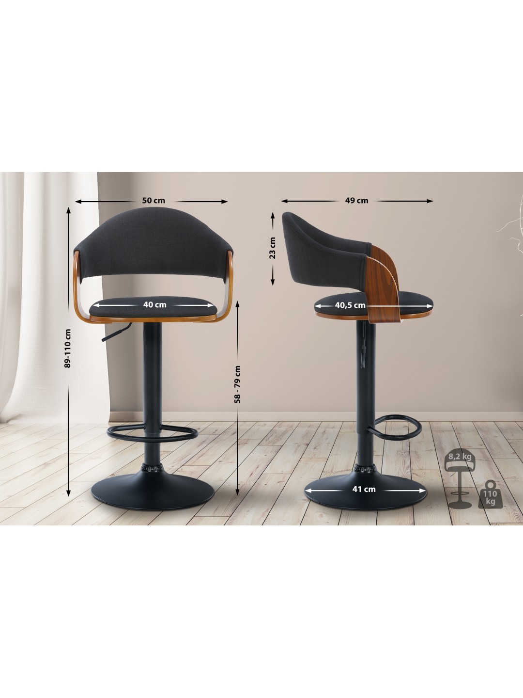 Barstol Nilse stof, valnød/sort