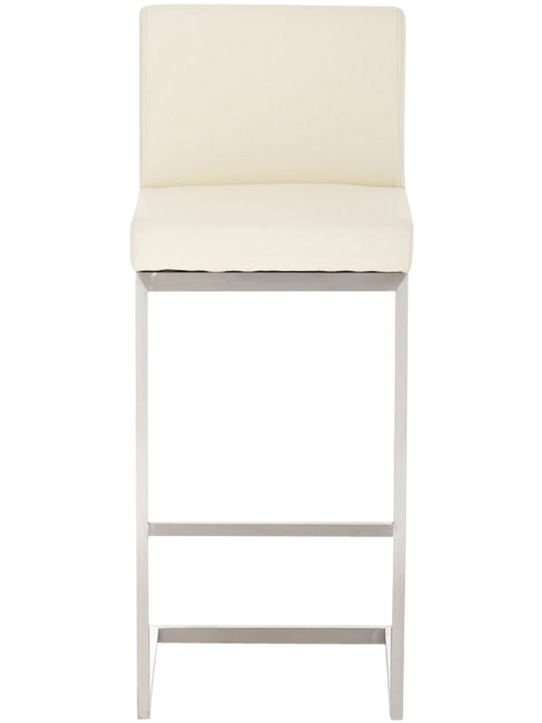 Den lige udkragede stel af børstet rustfrit stål skaber et fantastisk blikfang, og sædets lette gyngen opfattes som meget behageligt. En integreret tværstang fungerer som en behagelig fodstøtte, mens ryglænet på sædet understøtter det nederste rygområde. Sæde og ryglæn er generøst polstret og har et slidstærkt imiteret læderbetræk, der er let at pleje.