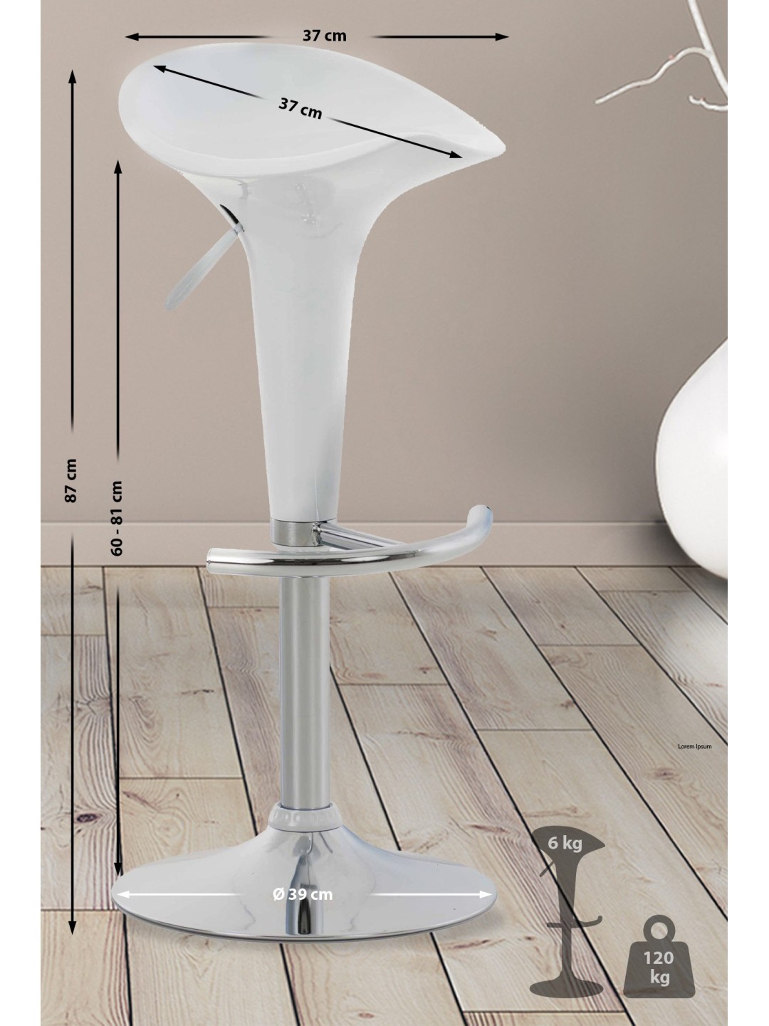 Barstolen Saddle imponerer med sit moderne design og stærke farver, der udstråler ungdommelig charme. Takket være gasliften er denne model trinløst højdejusterbar og kan derfor bruges universelt og er velegnet til alle skrankehøjder. Sædet kan drejes 360° og det ergonomisk formede sæde tilpasser sig din krop og giver dig mulighed for at sidde komfortabelt i timevis. Takket være plastikken er denne bordskammel nem at rengøre. Trompetbunden af ​​metal med krom-look er udstyret med en fodstøtte, der understøtter siddekomforten. Der er en gummiring under bundpladen for at forhindre skader på gulvet.