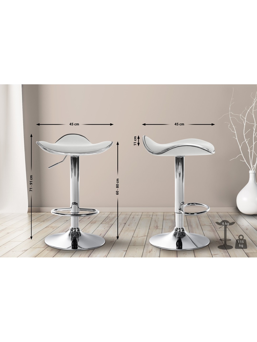 Sædehøjde: 80 cm x 60 cm 45 cm