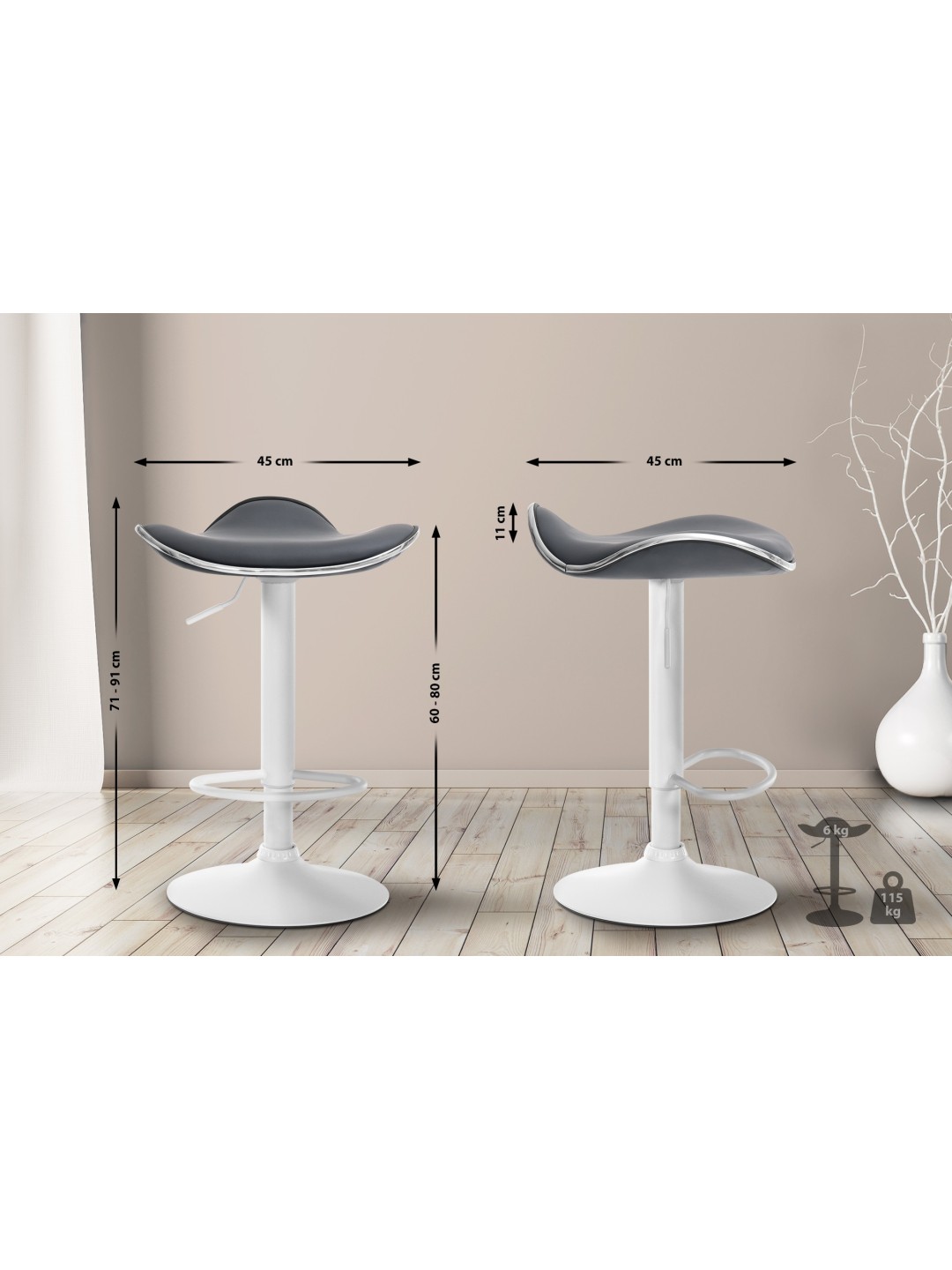 Afføringssædet er beklædt med kunstlæder af høj kvalitet, tilbyder behagelig polstring, og krumningen af ​​sædeskallen understøtter halebensområdet. Den robuste metalramme er stabil og stabil og ekstremt fleksibel takket være 360 ​​graders rotation. Den trinløse højdejustering giver mulighed for individuelle justeringer, mens den integrerede fodstøtte giver ekstra komfort.