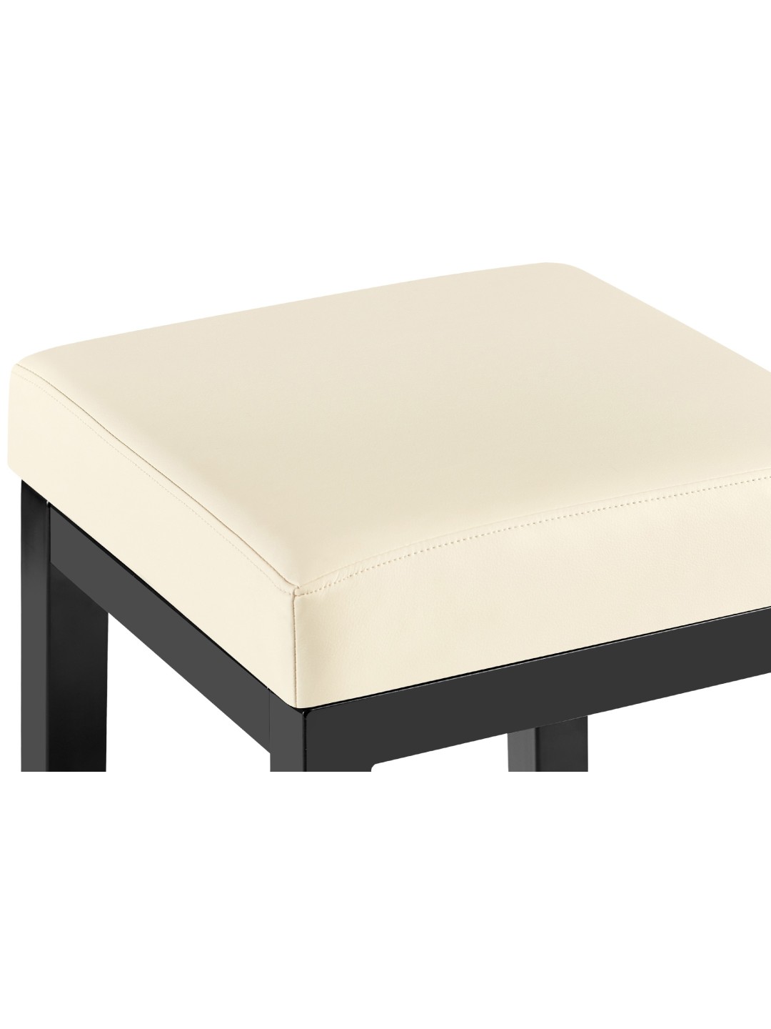 Den firkantede sæde på bordstolen er komfortabel selv uden armlæn og ryglæn. Dette sikres af polstringen, enten beklædt med stof eller imiteret læder.