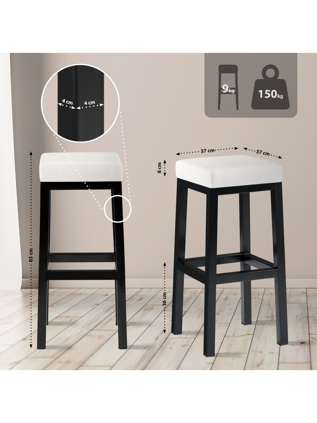 Skamlen står på et robust firbenet stel af matsort metal. Dette stel er ekstremt stabilt og skånsomt mod gulvet, så det ikke beskadiger følsomme gulve. Rammens tværstænger kan bruges som en behagelig fodstøtte og giver yderligere stabilitet, så barstolen kan holde op til 150 kilo.