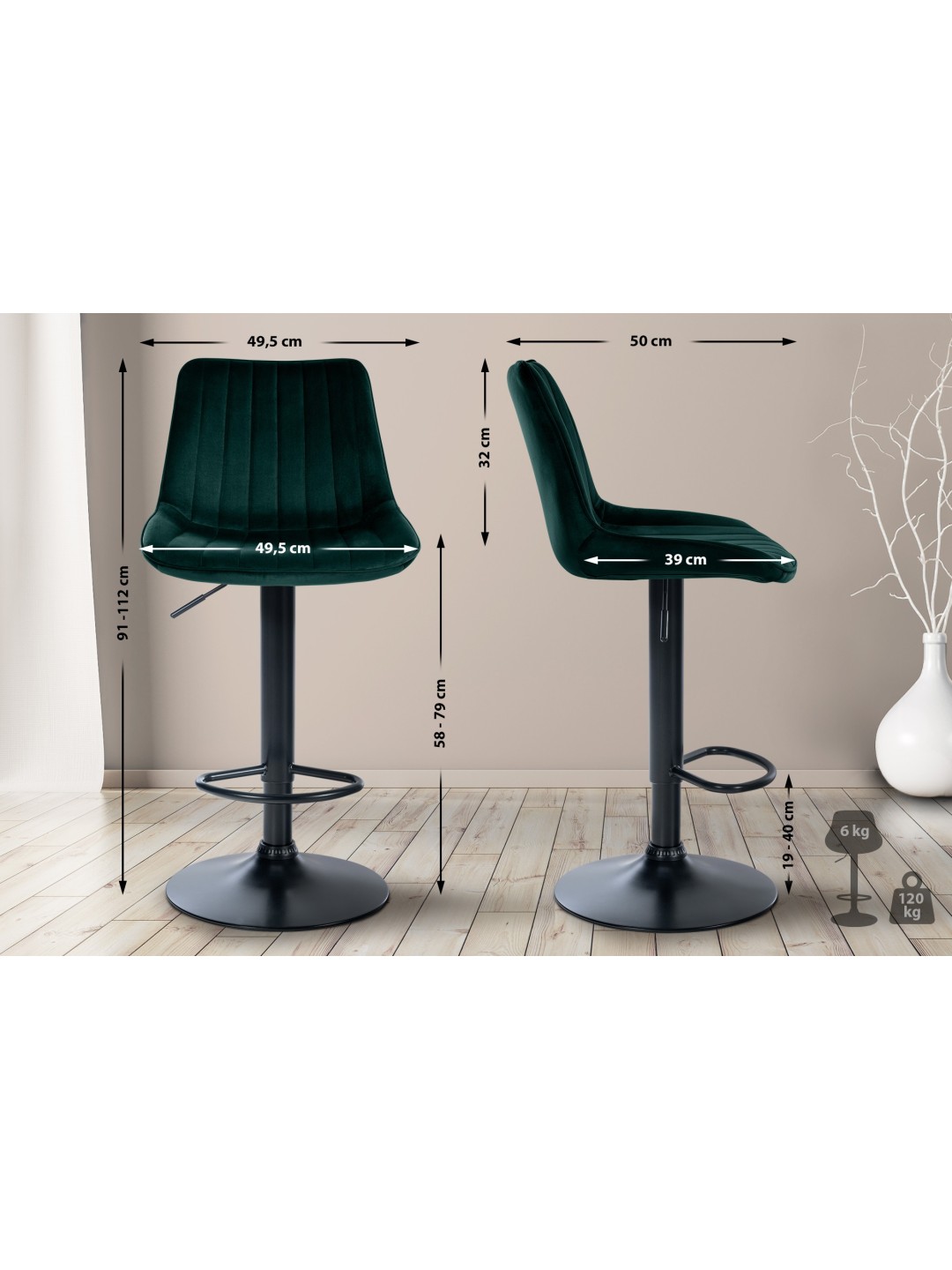 Barstol Toni fløjl, grøn