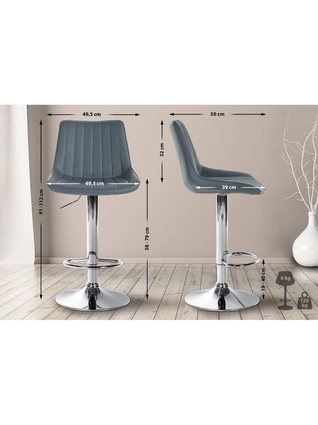Barstol Toni imiteret læder krom, grå