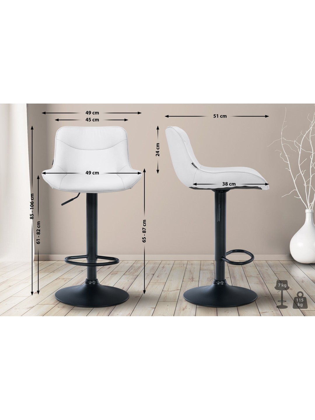 Sædeareal 45 cm (BxDMax.): 8 cm. Belastningskapacitet: 115 kg