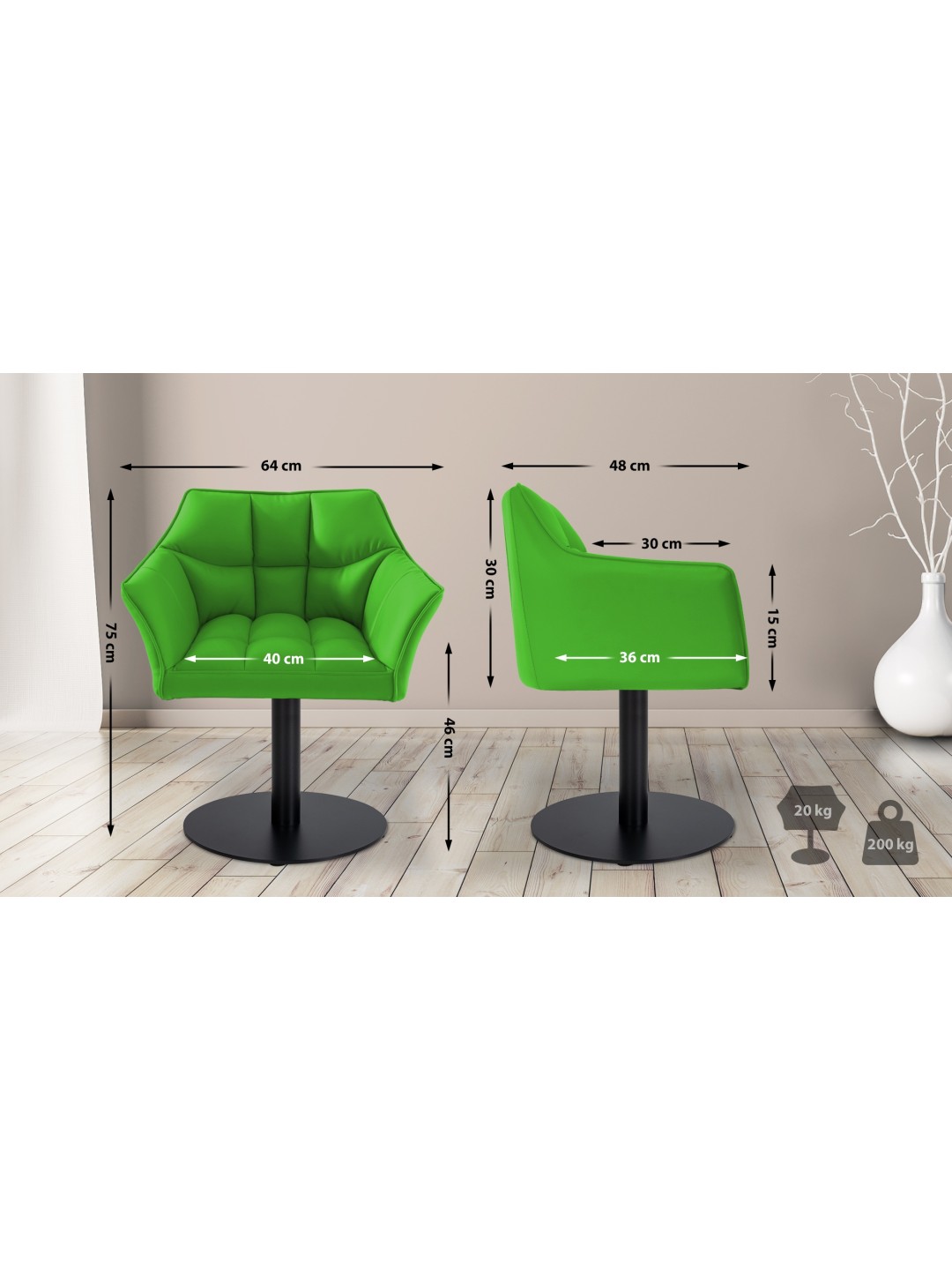 armlæn: 30 cm Armlæn: 15 cm. 20 kg