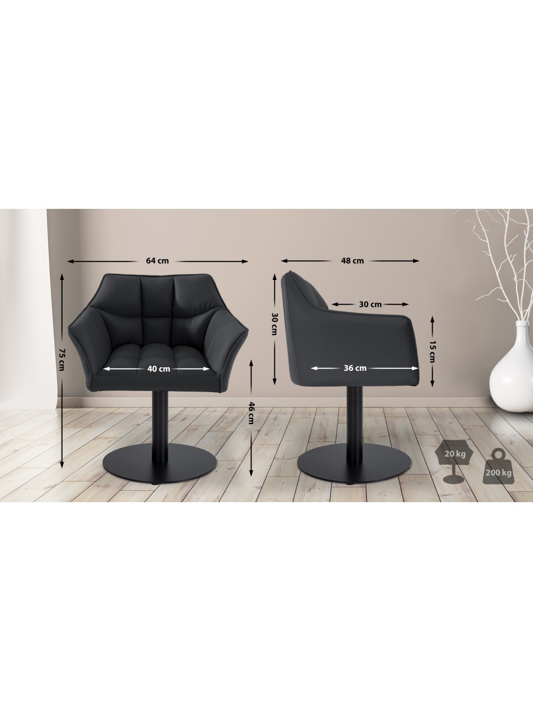 Siddeområde (BxD): 40 x 36 cm