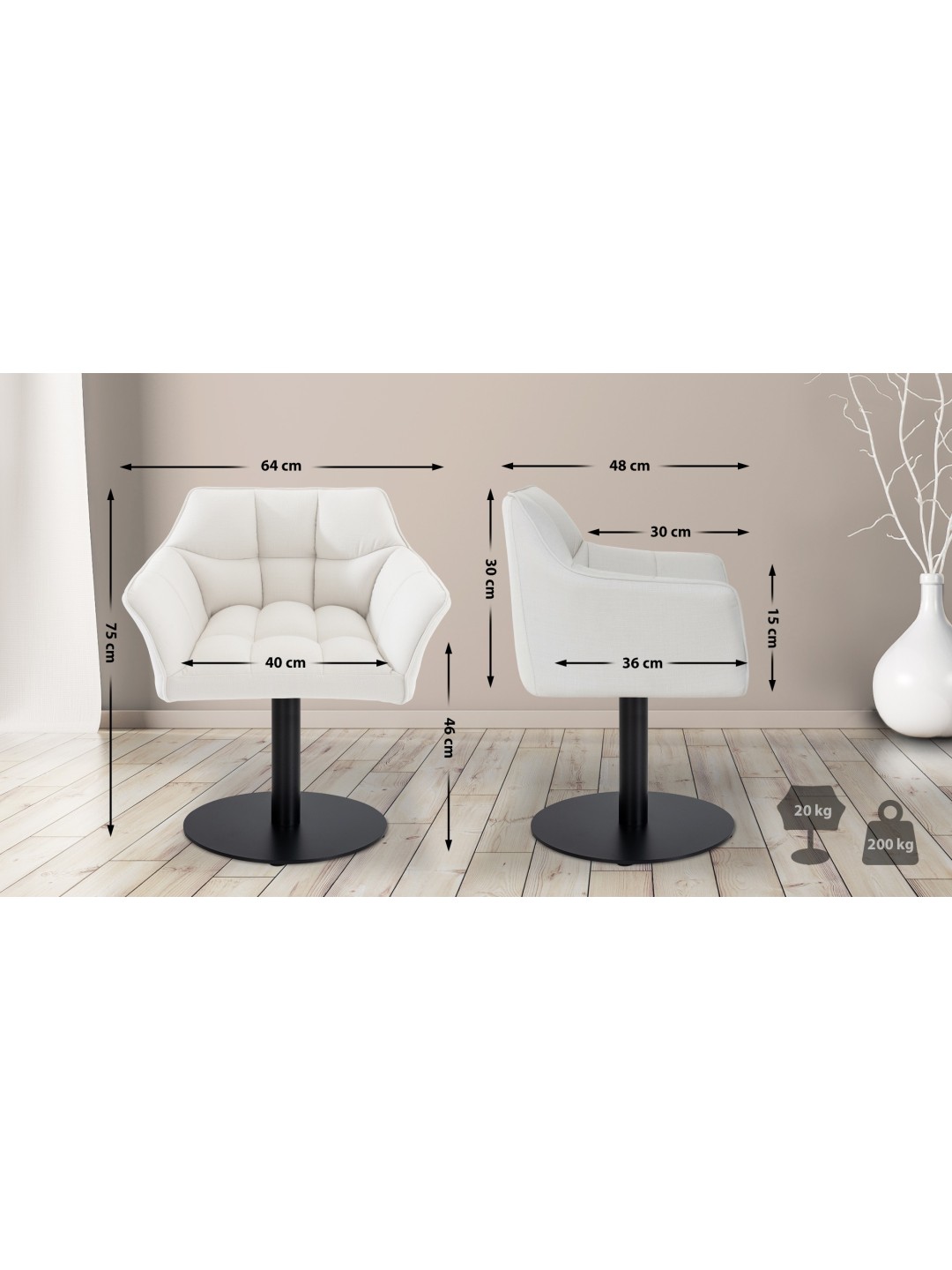 Siddeområde (BxD): 40 x 36 cm