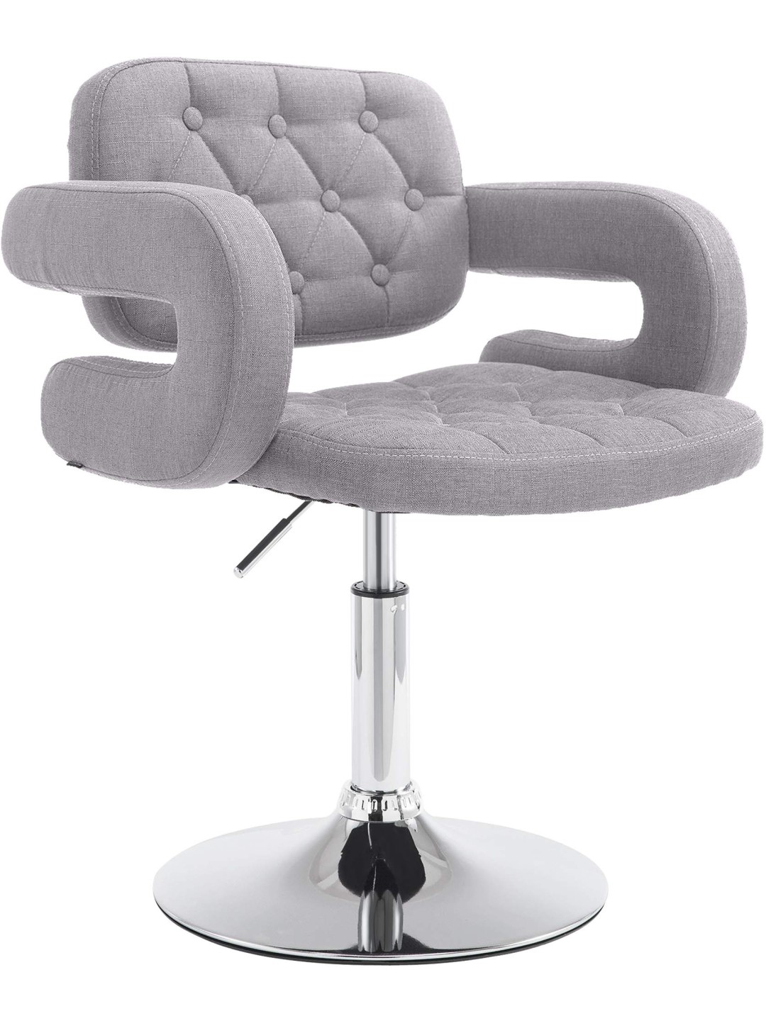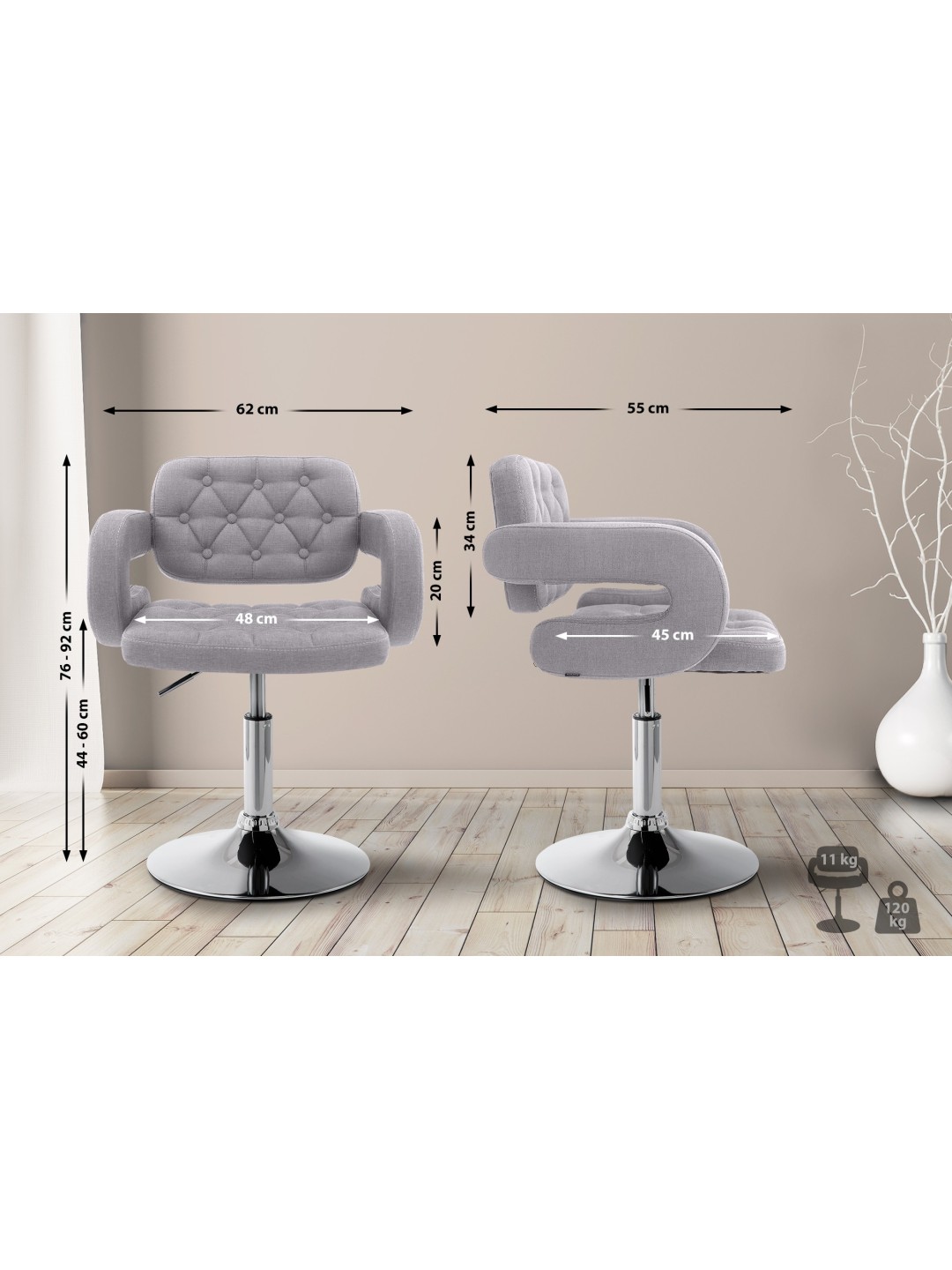 Med buede armlæn og ryglæn til lænden giver den behagelig støtte. Den robuste metalramme sikrer stabilitet og en bæreevne på op til 120 kg. Gulvbeskyttere beskytter gulve mod ridser.