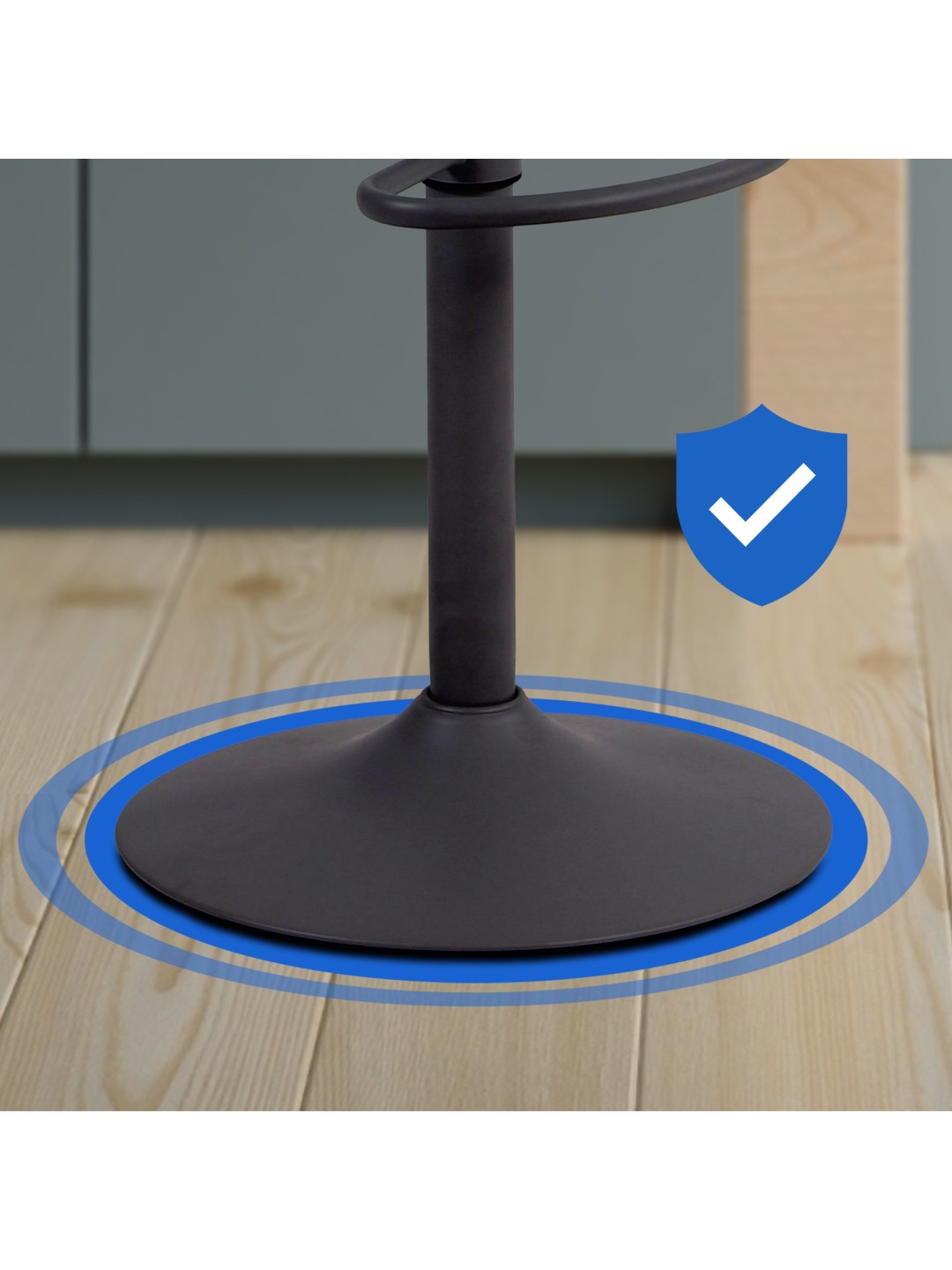 Barstolens ramme er lavet af metal. Trompetbunden på gulvet giver barstolen den nødvendige stabilitet. Den integrerede fodstøtte, som kan justeres synkront med sædehøjden, bidrager til en behagelig siddestilling og giver dig mulighed for at sidde komfortabelt i flere timer.