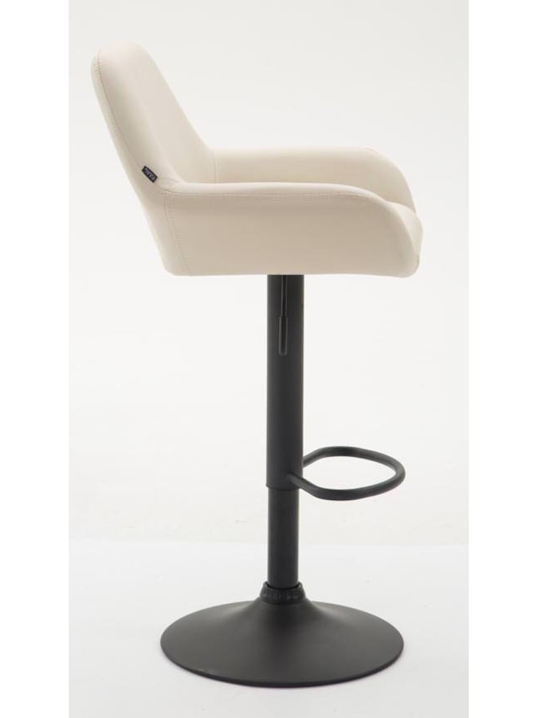 Barstolen består af et lænestolsformet, tykt polstret sæde, der har et imiteret læderbetræk. Takket være det polstrede sæde og ryglæn tilbyder barstolen en høj siddekomfort. Barstolens sæde kan frit drejes 360° og er særdeles behageligt takket være det ergonomisk formede sæde.