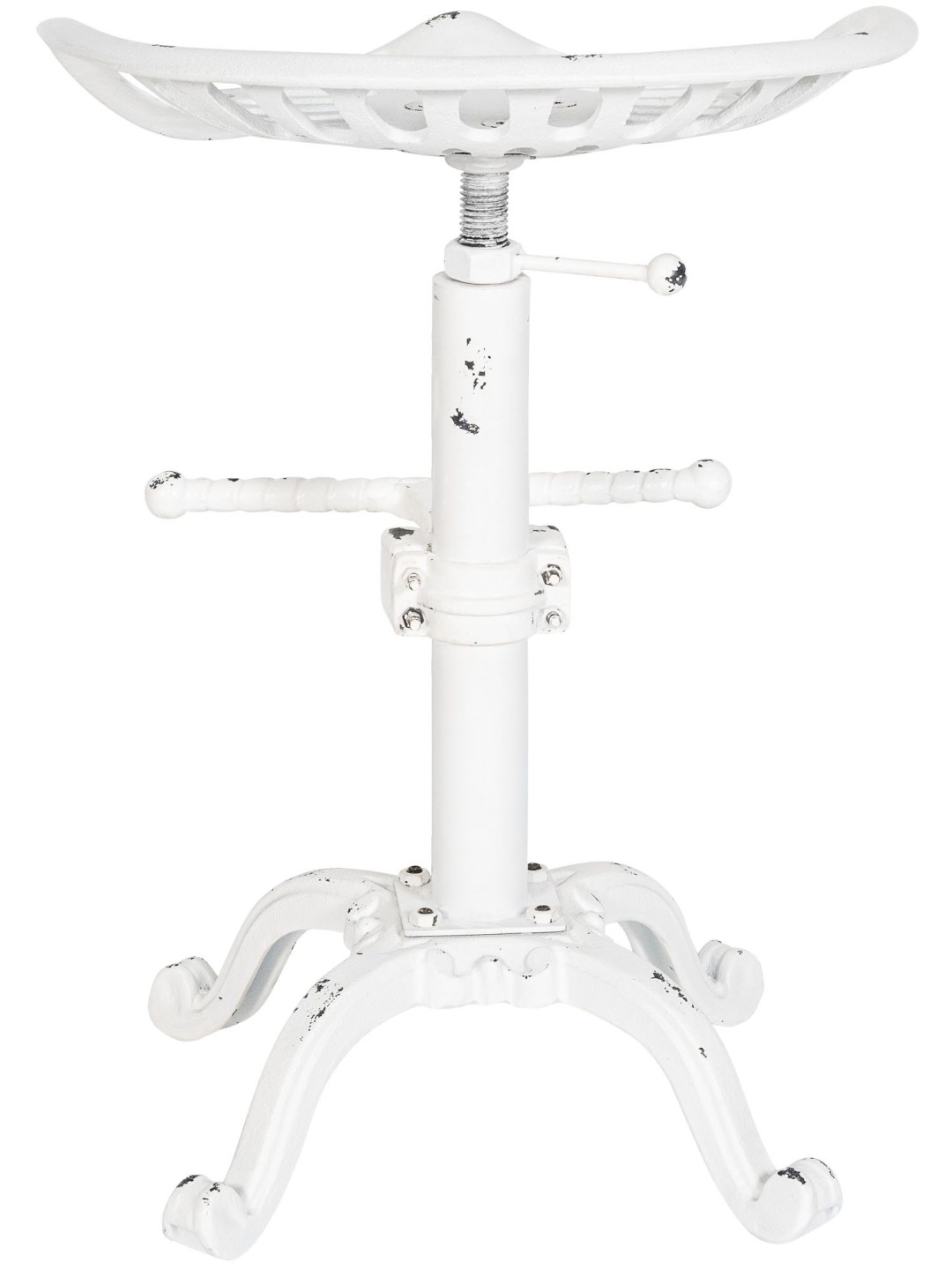 Sæt med 2 barstole Butch Ekstraordinært look med konventionelle materialer, hvilket gør denne taburet til et helt særligt højdepunkt. Støbejernssædet på de to barstole giver den bedste siddekomfort selv uden polstring, fordi sædet er formet, så det passer til din krop med en let kurve. Det højdejusterbare sæde, som kan justeres ved hjælp af låsehåndsvinget under sædet og dermed forhindrer generende slingren, tilbyder komfortable siddepladser til enhver kropsstørrelse. Derudover optimerer den komfortable fodstøtte, som også er højdejusterbar, siddekomforten yderligere. Højden på fødderne kan justeres individuelt ved hjælp af gulvbeskyttere, hvilket gør irriterende vaklen til fortiden. Den dekorerede ramme lavet af pulverlakeret metal er med til at give taburetsættet sit unikke design og sikrer et sikkert stativ.