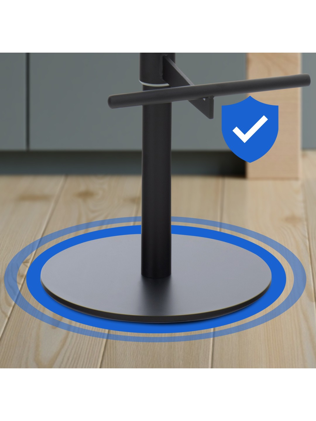 De integrerede fodstøtter giver ekstra siddekomfort. Endelig er barstolene udstyret med gulvbeskyttere, så selv følsomme overflader beskyttes.