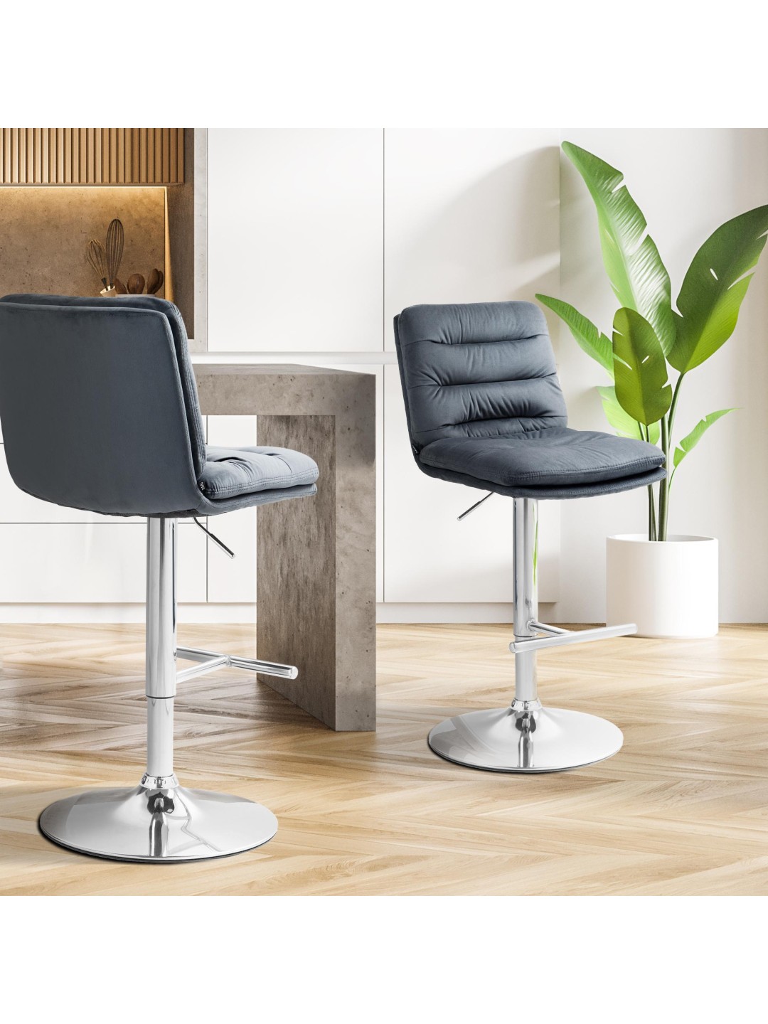Sæt med 2 barstole Damar fløjlskrom, mørkegrå