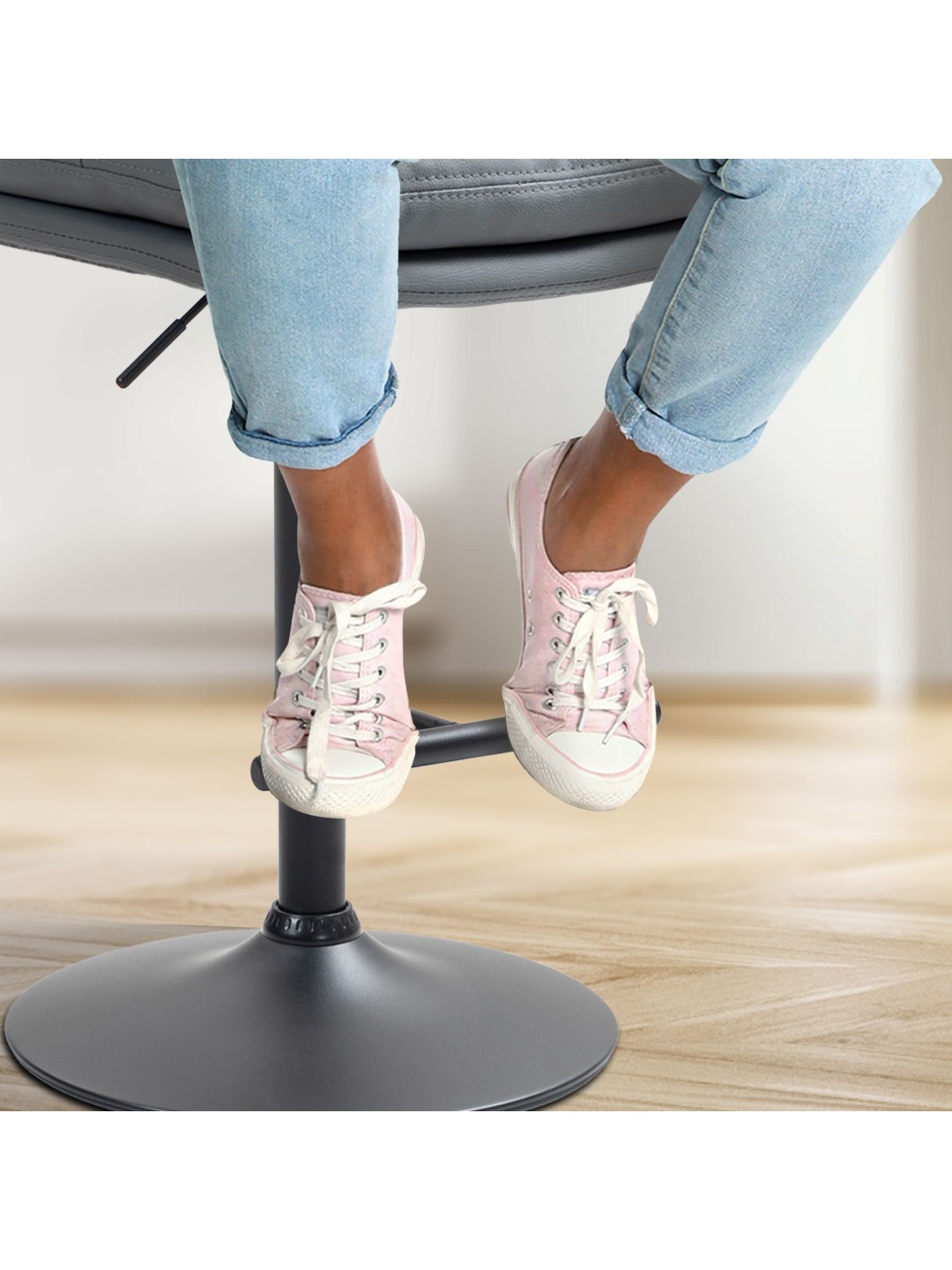 Skamlens stel og det moderigtige betræk giver taburetten et elegant udseende. Sædet er beklædt med letplejet kunstlæder. Metalrammen er højdejusterbar og 360 graders rotationsfunktionen sikrer masser af bevægelsesfrihed.