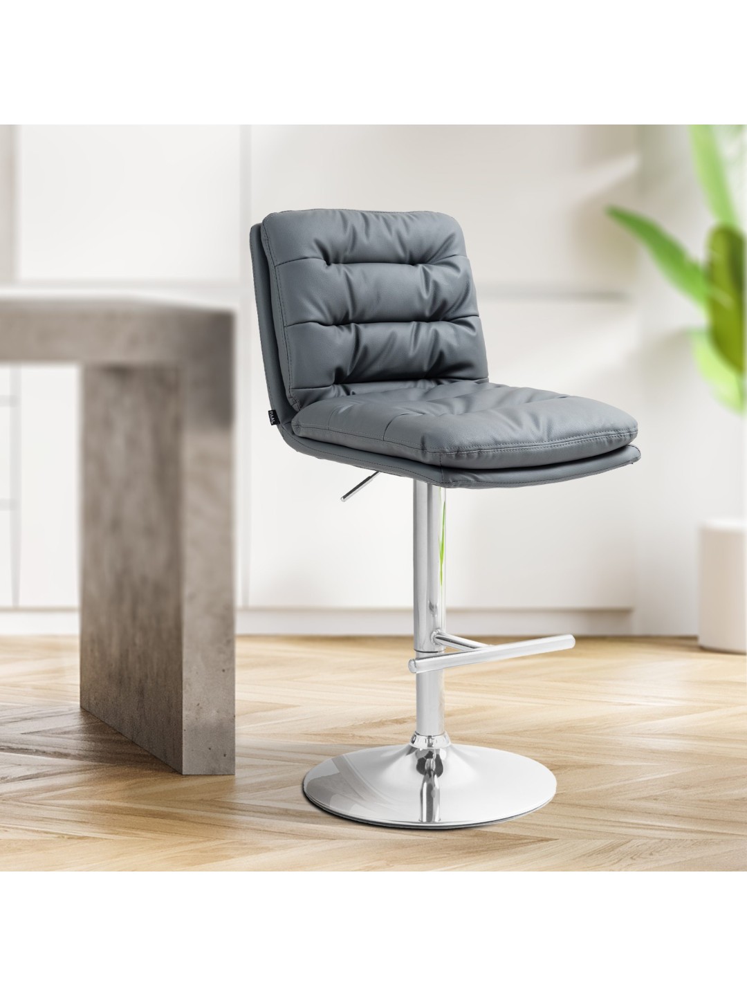 Barstolen Damar imponerer med sit moderne design og høje siddekomfort. Det tykt polstrede sæde er særligt behageligt, og ryglænet aflaster lænden. Fodstøtten giver ekstra komfort.