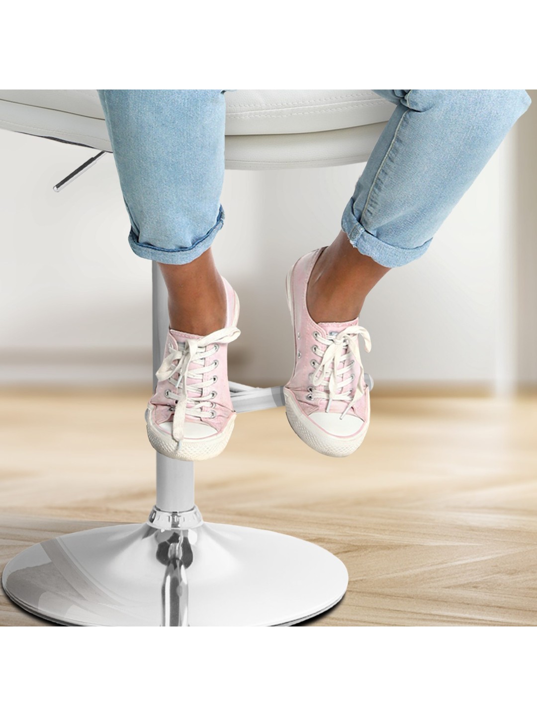 Skamlens stel og det moderigtige betræk giver taburetten et elegant udseende. Sædet er beklædt med letplejet kunstlæder. Metalrammen er højdejusterbar og 360 graders rotationsfunktionen sikrer masser af bevægelsesfrihed.