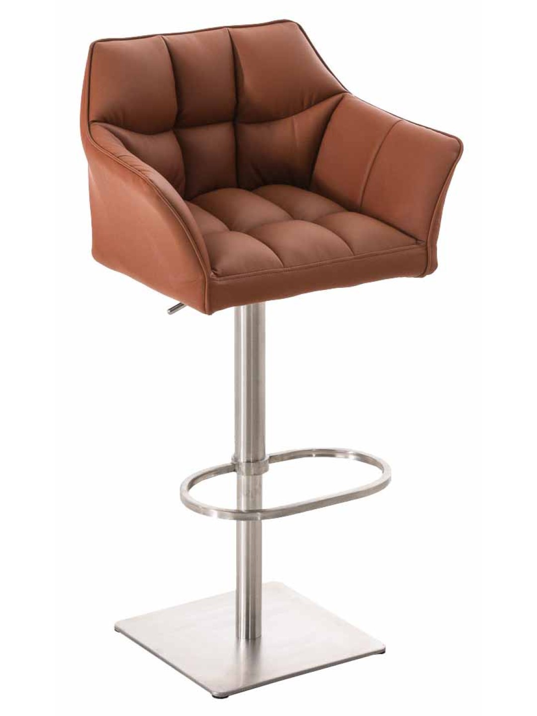 Sæt med 2 barstole Damaso imiteret læder rustfrit stål, lysebrun