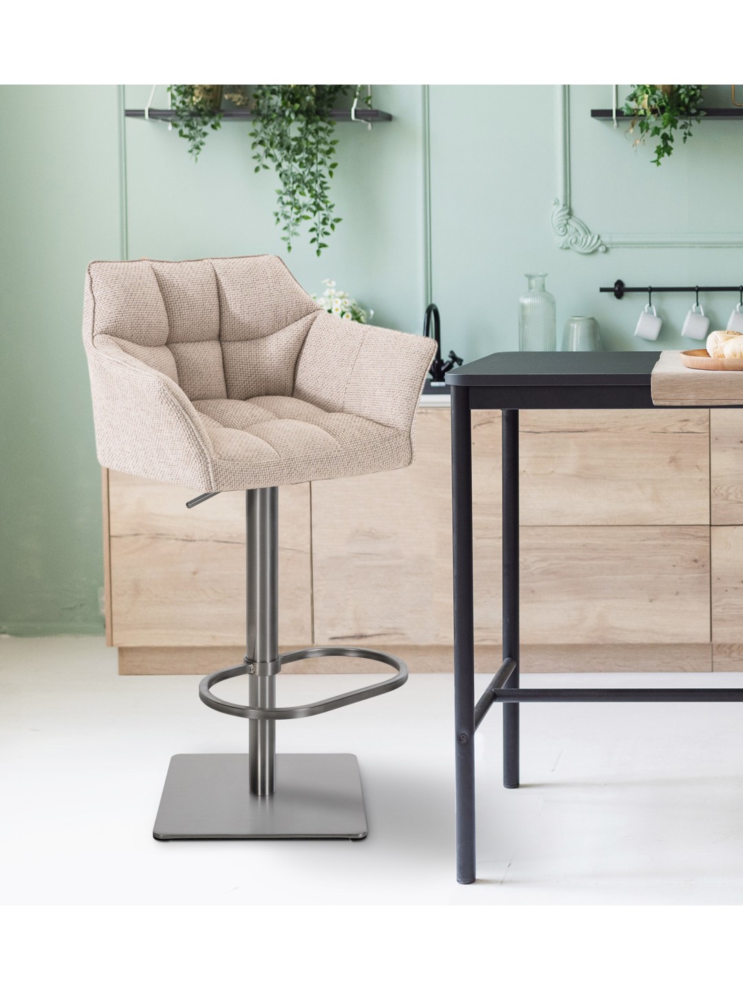 Sættet med to barstole Damaso kombinerer elegance med siddekomfort. Med polstret stofbetræk er taburetterne ideelle til køkkenet, stuen, spisestuen og hjemmebaren.