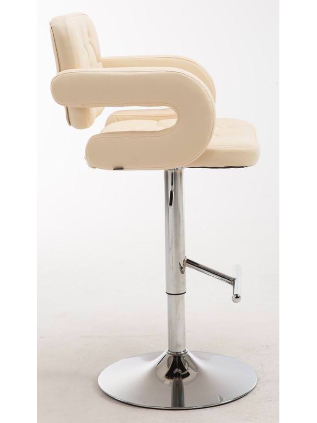 Barstolen har et lænestolsformet sæde med betræk i kunstlæder. Sædet er tykt polstret og bidrager til en behagelig siddeplads. Sædet kan drejes 360 grader og kan derfor justeres til enhver ønsket siddeposition.