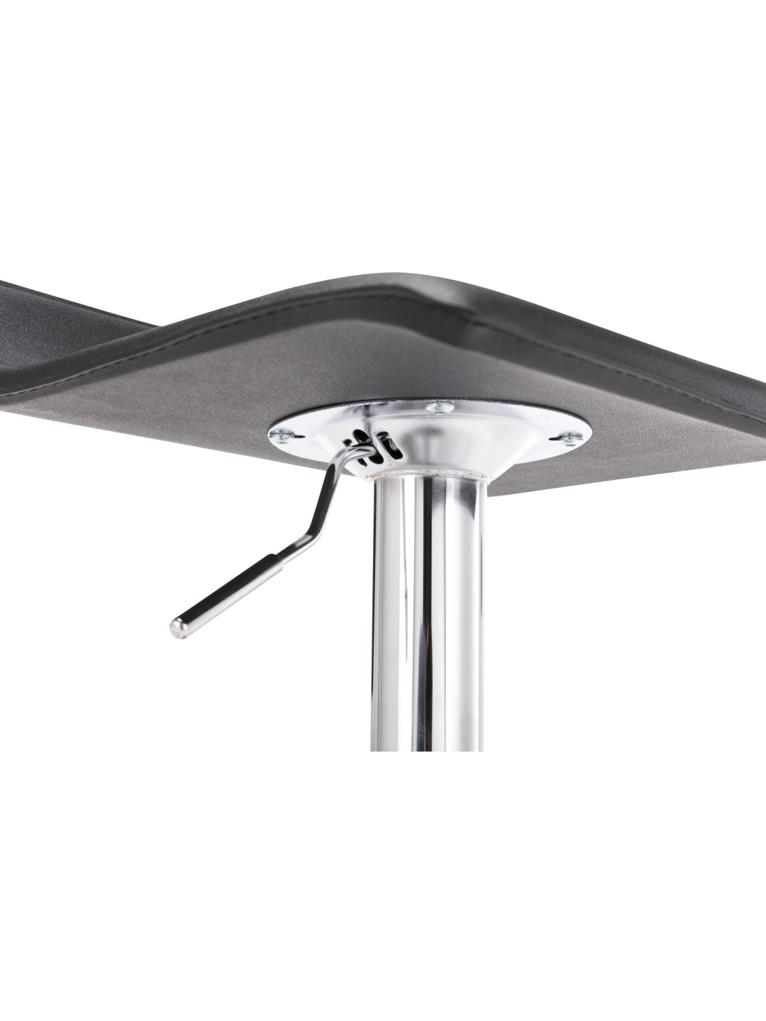 Sættet med 2 Dyn barstole inviterer dig til at tilbringe aftener sammen. Dens dynamisk formede sæder med kunstlæderbetræk kan trinløst justeres til den ønskede højde ved hjælp af en lufttryksfjeder. Et andet typisk træk ved vores barstole er fodstøtterne, som sikrer en rigtig god siddekomfort og kan justeres synkront med sædets højde. Rammen på barstolene er helt forkromet, og det plejevenlige sæde med fodstøtten kan drejes 360°.