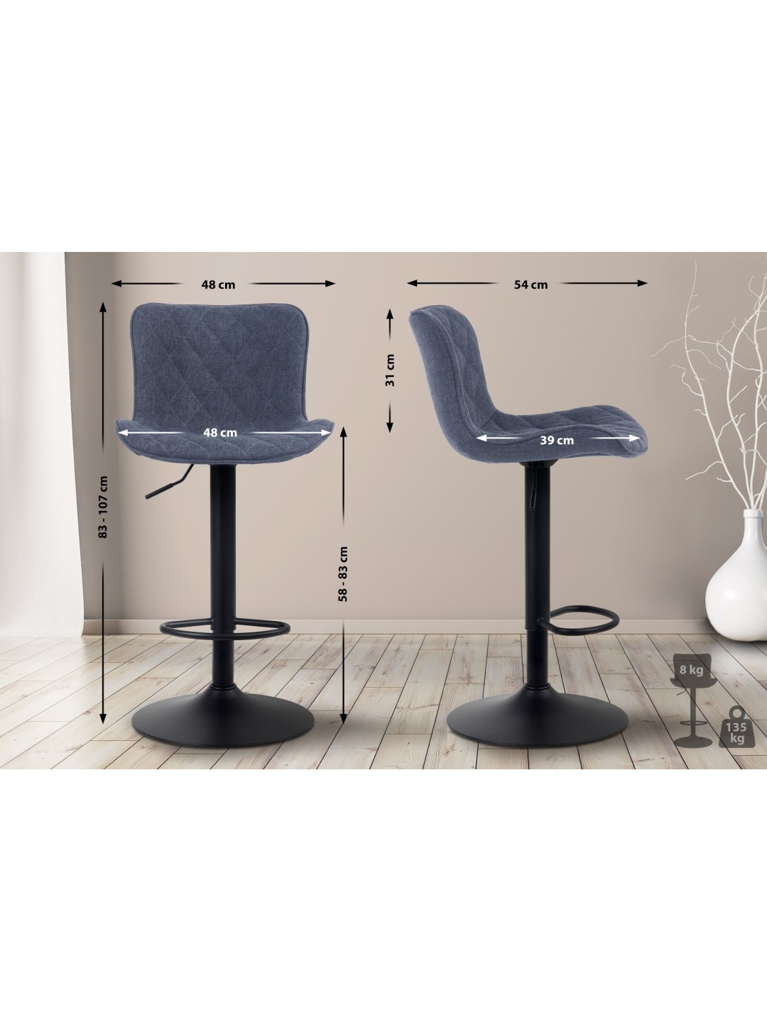 Total højde: 83 - 107 cm