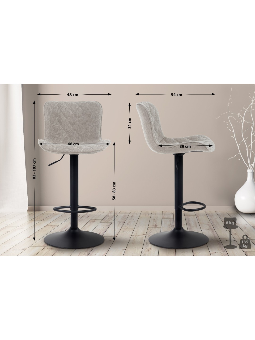 Total højde: 83 - 107 cm