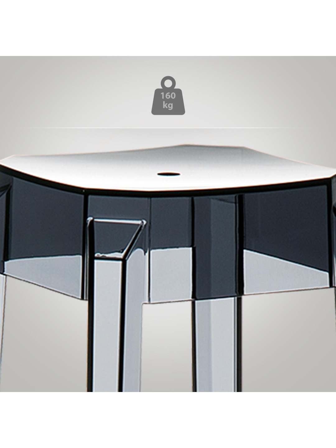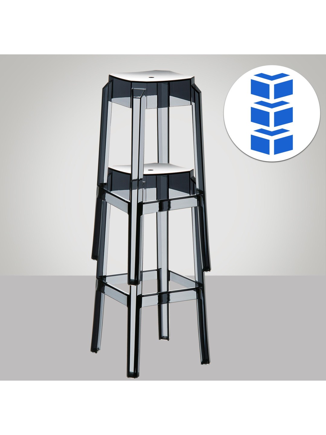 Med en sædehøjde på 75 cm og en omgivende fodstøtte giver de en særlig komfort. Bordskamlerne kan stables, så de kan opbevares for at spare plads. Skamlerne er lavet af enten højkvalitets, skinnende nylon eller klar, gennemsigtig polycarbonat.