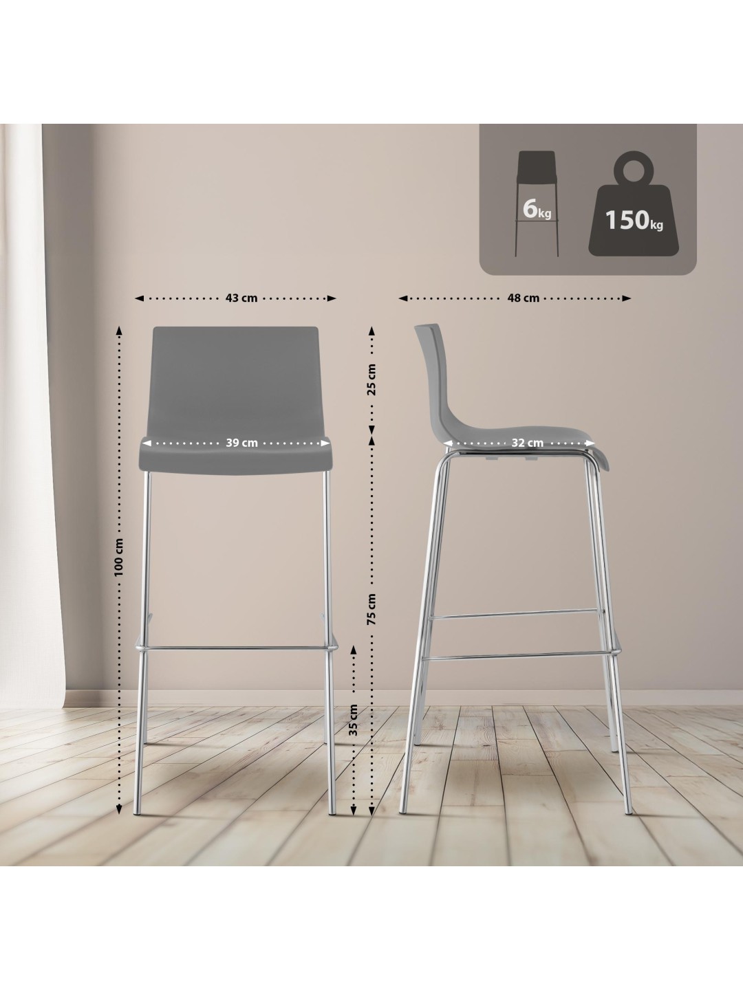 Sæt med 2 barstole Hoover plastik 4-fods stel krom, grå