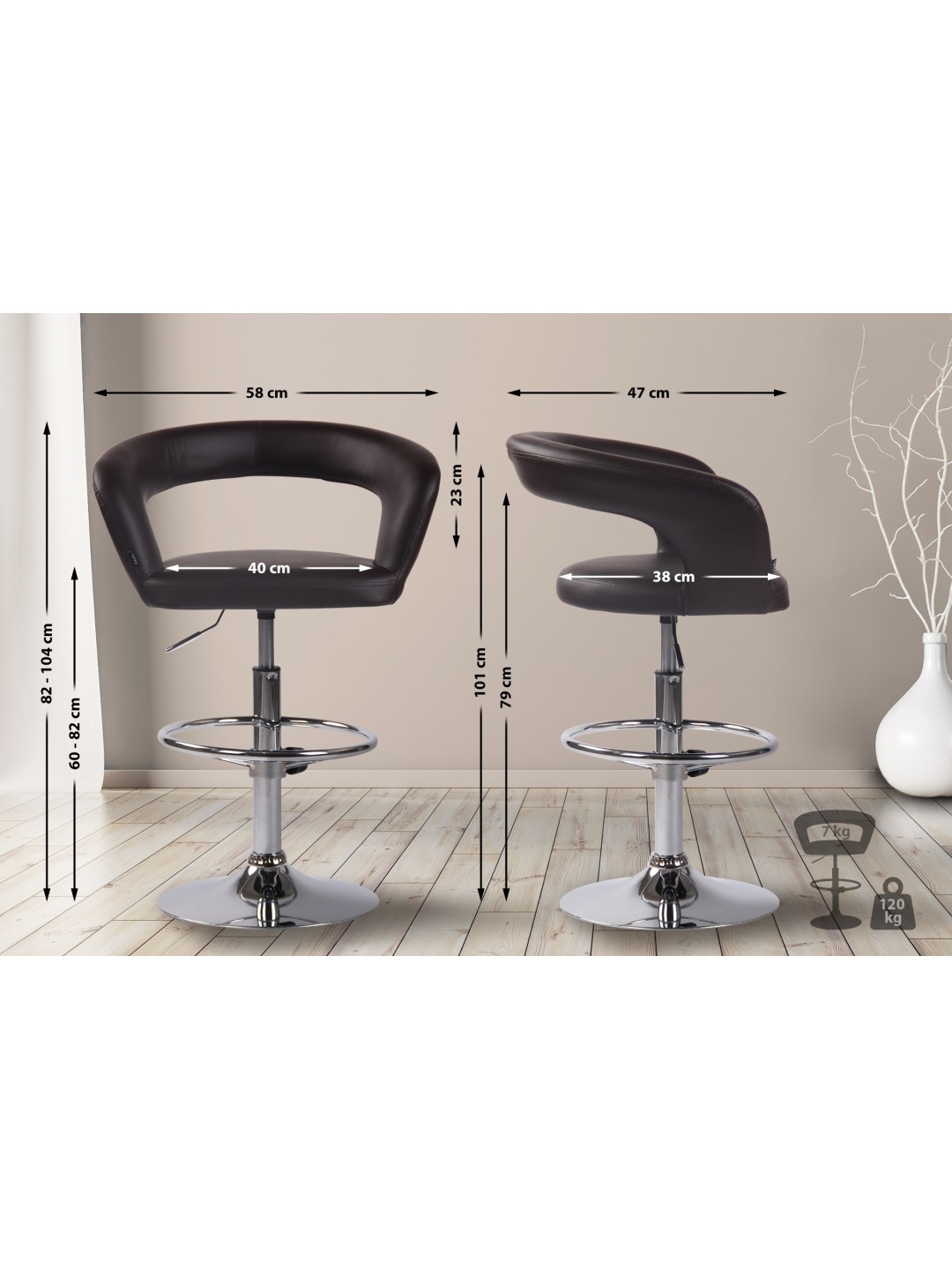 Total højde: 82 - 104 cm