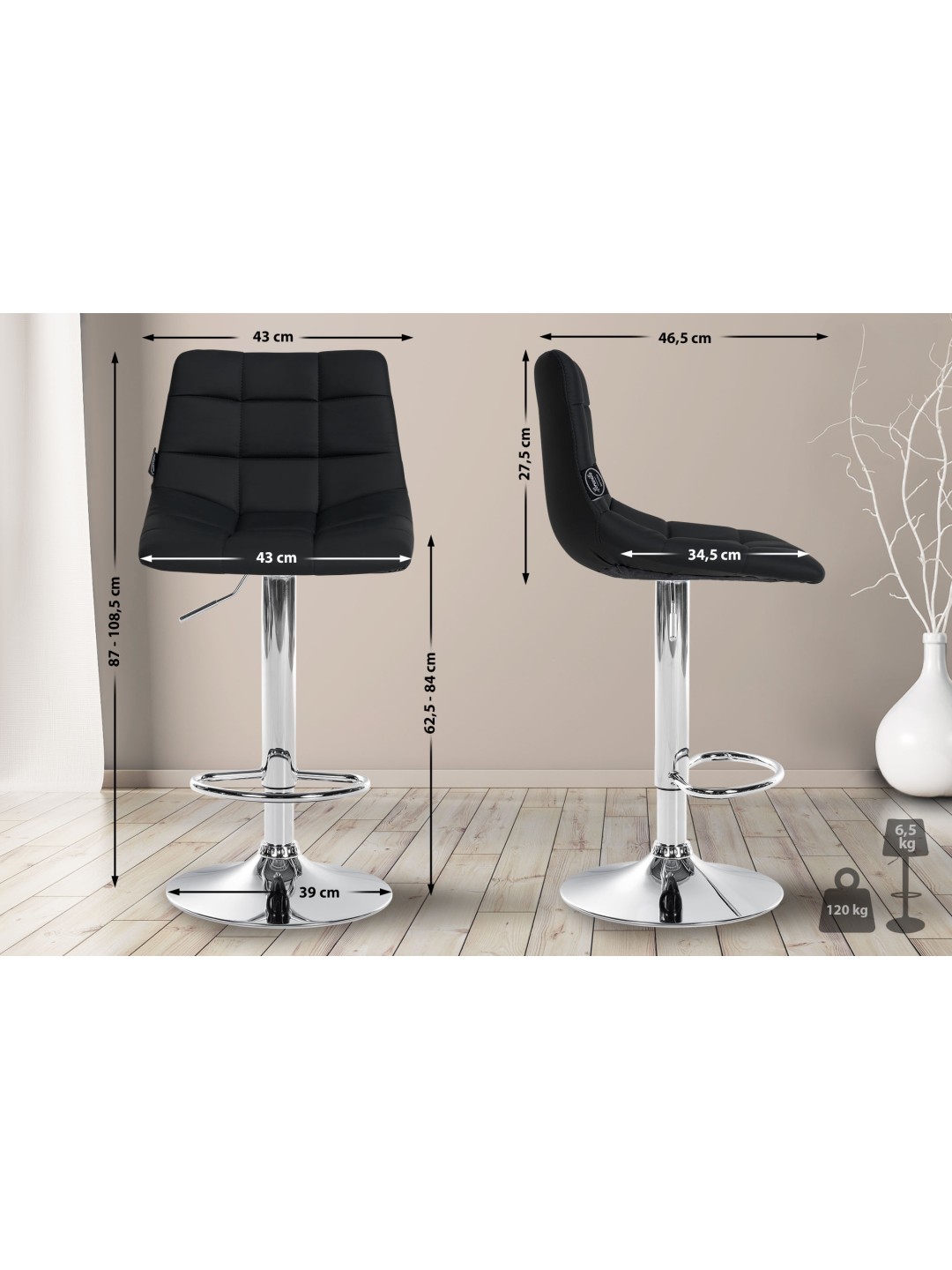 Taburettens betrækket er lavet af blødt imiteret læder og har et klassisk quiltet mønster. Taburettens robuste metalramme fås i krom eller sort og sikrer høj stabilitet og lang levetid. Taburettens minimalistiske og moderne design passer problemfrit ind i ethvert interiør. Køkkenskamlen er nem at samle og nem at rengøre. Til rengøring er en fugtig bomuldsklud tilstrækkelig til at tørre let snavs af.