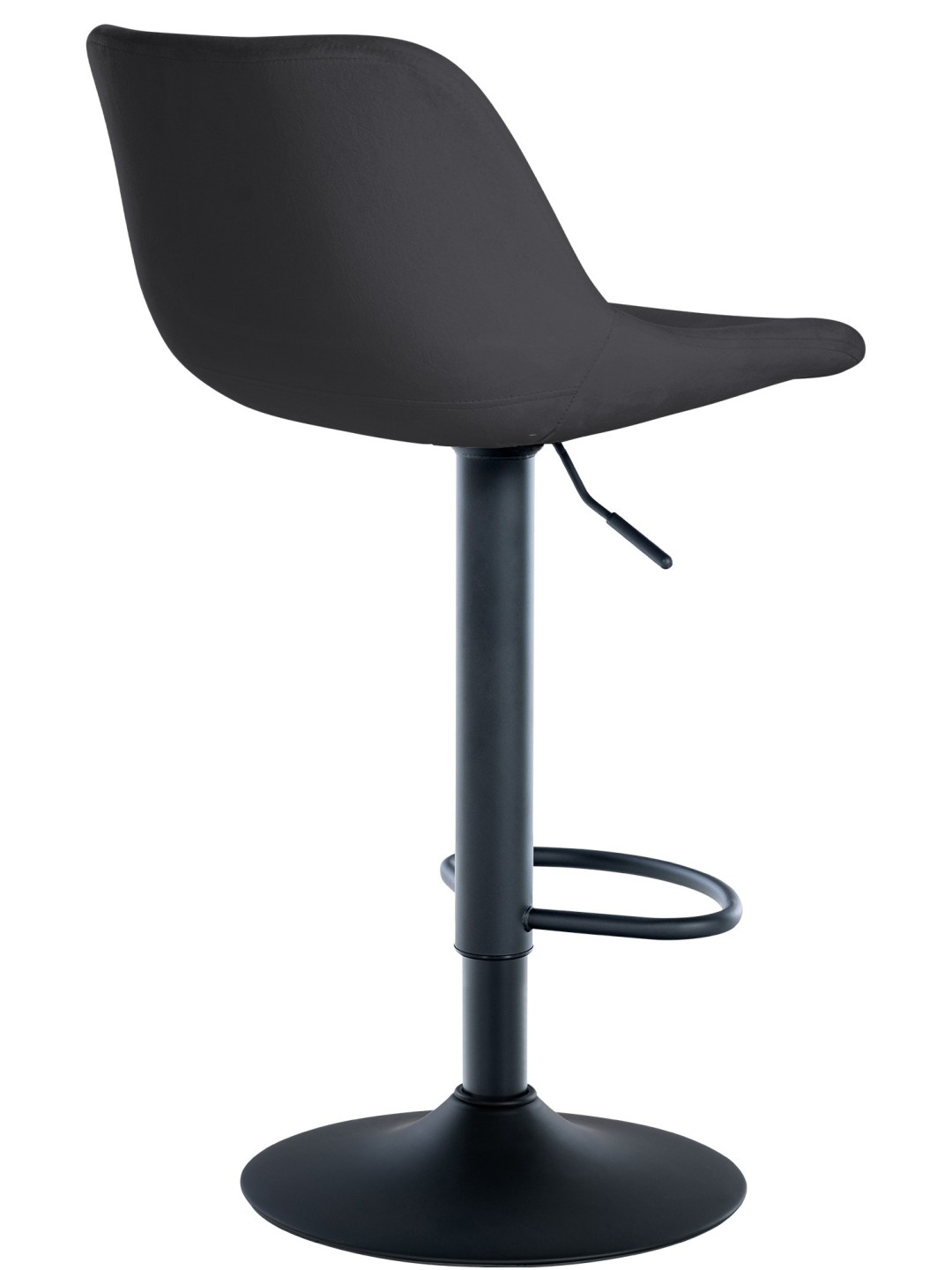 Sæderne fås i stof, fløjl eller imiteret læder for at kunne rotere stolen. 360°. De har desuden hver især en fodstøtte, som sikrer en behagelig siddestilling i lang tid. Metalrammerne i sort er højdejusterbare og giver et sikkert stativ. Stellet er desuden udstyret med gulvbeskyttere for at undgå at ridse gulvene.
