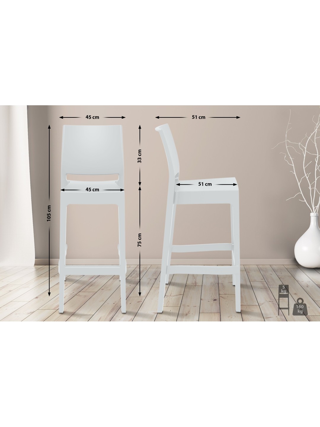 Dette barstolssæt imponerer med sit enkle design og mange funktionelle funktioner. En behagelig siddeoplevelse skabes af sædehøjden på 75 cm i kombination med ryglænet. Denne komfort afrundes af fodstøtten. Takket være dens materialesammensætning lavet af glasfiberforstærket polypropylen er disse taburetter velegnede til indendørs og udendørs brug. Derudover er bordskamlerne fuldstændig vejrbestandige og modstandsdygtige over for pletter, snavs og fugt. Barstolene er også UV-bestandige; Selv hyppigt og intenst sollys får ikke plastikken til at gulne eller falme; farvedybden bevares i lang tid. Hvis du har brug for at gemme Maya væk, kan disse taburetter også stables. Et rigtigt blikfang i et enkelt design!