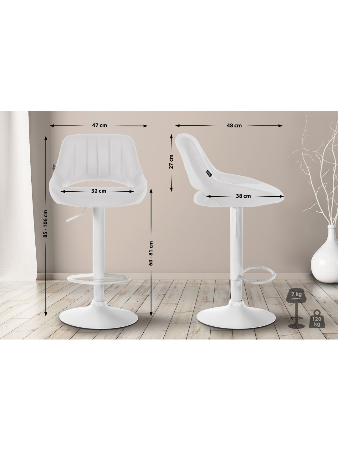 Sæt med 2 barstole Milet imiteret læder W, hvid