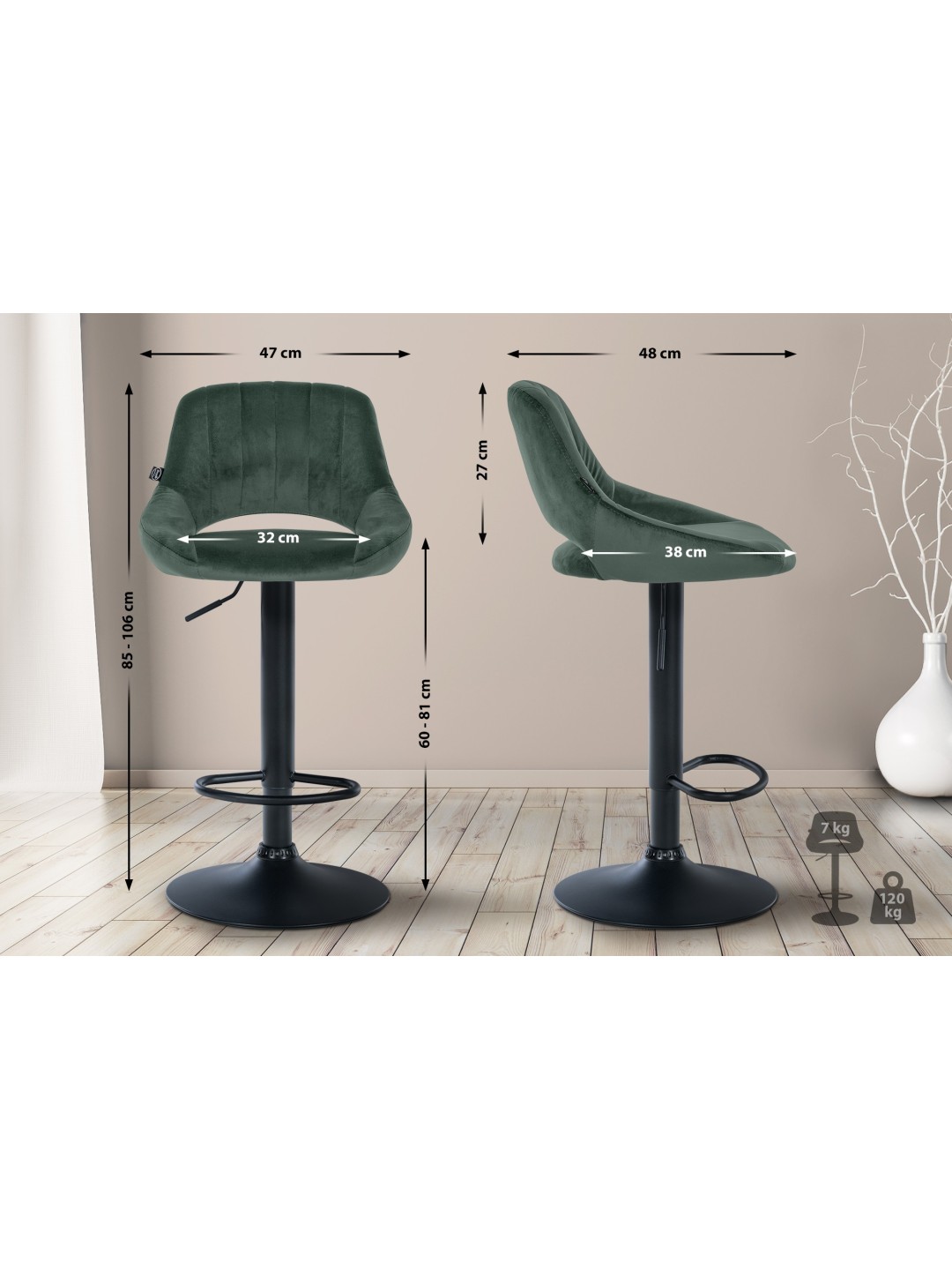 Moderne look og høj kvalitet kan findes i barstolen Milet. Det behageligt polstrede skammelsæde har et smukt og letplejet fløjlsbetræk, og det lave ryglæn giver støtte i lænden. Højdejusterbarheden af metalstellet giver dig mulighed for at finde den perfekte sædehøjde, og 360 graders drejefunktion sikrer masser af bevægelsesfrihed. Den integrerede fodstøtte giver ekstra siddekomfort. Endelig er barstolen udstyret med gulvbeskyttere, så selv følsomme overflader beskyttes.