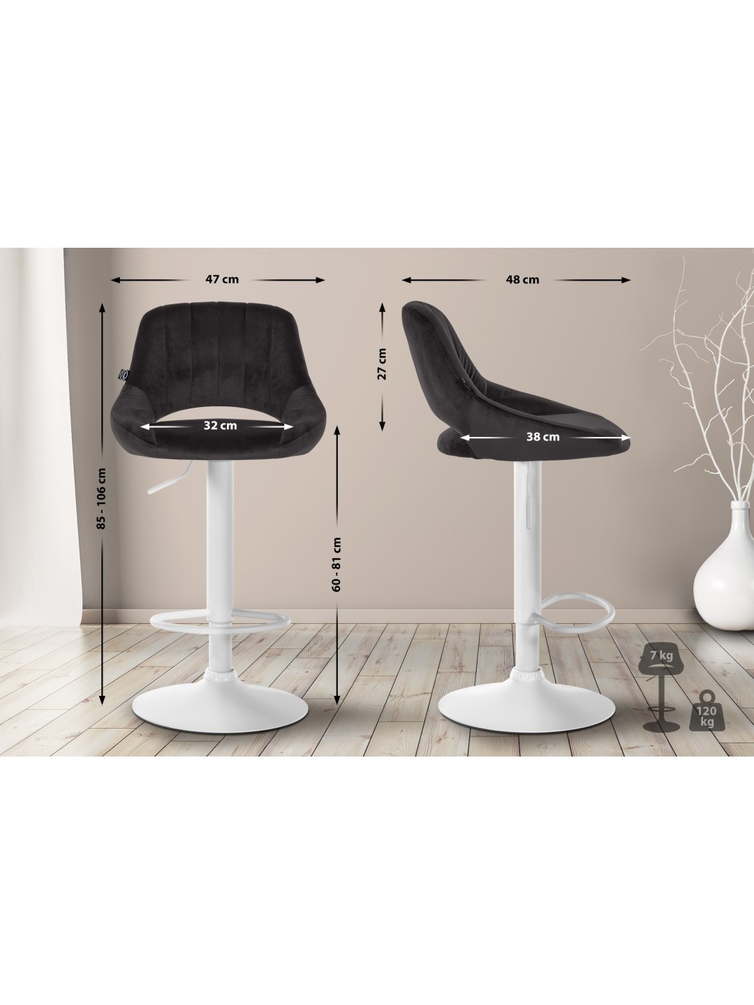 Sæt med 2 barstole Milet velvet W, sort