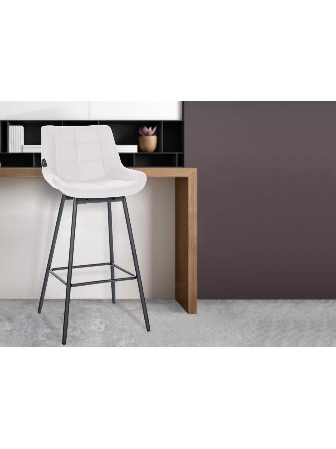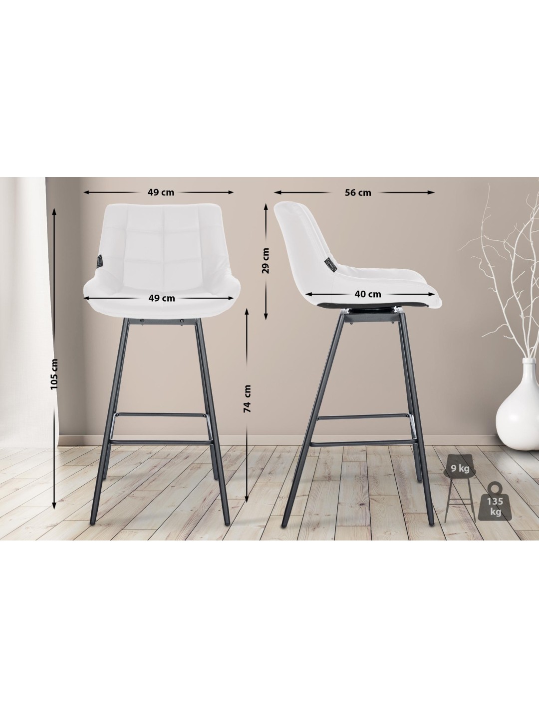 Taburetterne skylder deres smukke udseende til den stilfulde kombination af quiltede betræk og sorte metalstel.