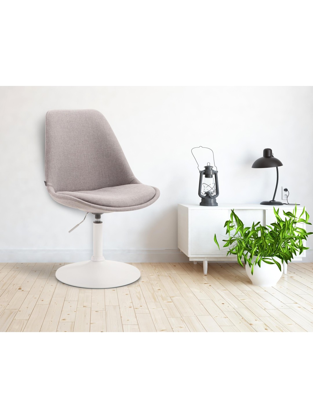 Den polstrede stol kan drejes 360 grader og er trinløst højdejusterbar, så sædehøjden kan justeres mellem 43 og 48 cm. Det betyder, at stolen kan bruges til forskellige bordhøjder og kropsstørrelser.