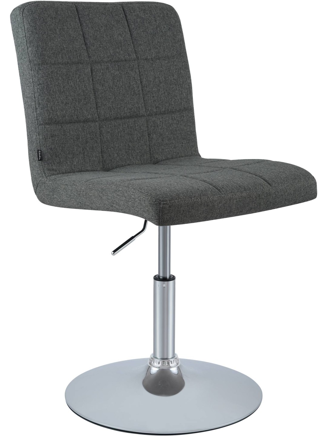 Lænestolen er både højdejusterbar og drejelig 360° og lover derfor mere fleksibilitet. Stellet er lavet af metal med krom look og der er gulvbeskyttere under trompetbunden for at undgå at gulvet bliver ridset. Denne polstrede stol giver et moderne flair og komplementerer ethvert boligmiljø vidunderligt.