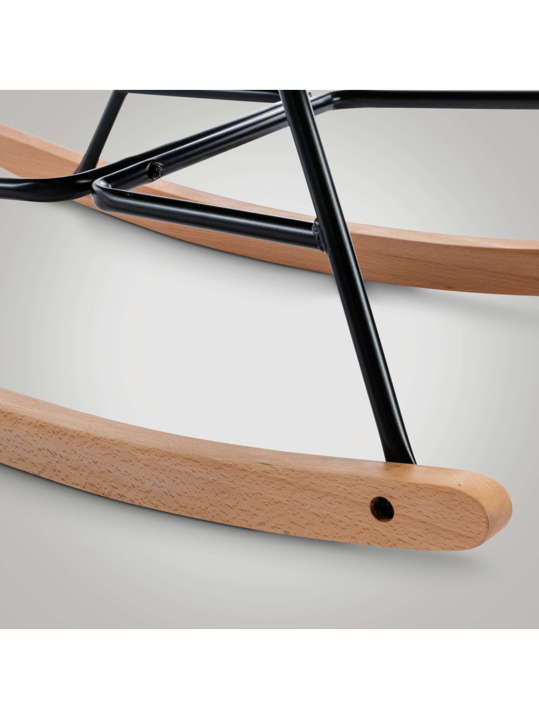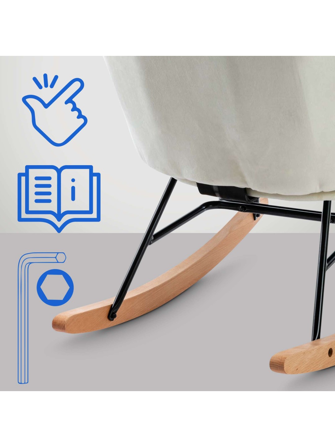 Sanka gyngestolen er et behageligt, solidt og samtidig stilrent sæde til hverdagsbrug. Det moderne møbel passer perfekt ind i næsten enhver stuestemning. Den komfortabelt polstrede sædeskal med fløjlsbetræk lover behagelig siddekomfort. Knapperne på rygpuden tilføjer moderigtige accenter. De elegant formede løbere i bøgetræ er skruet fast på et sortmalet metalstel af høj kvalitet, som giver stolen dens høje stabilitet. Et alsidigt smukt møbel, som du vil have glæde af i lang tid!