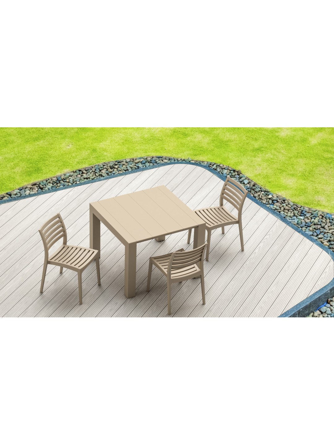 Ares havestolen er lavet af vejrbestandig plast af høj kvalitet. Den klipper en god figur ikke kun indendørs, men også udendørs såsom terrassen eller altanen. De anvendte materialer gør den også UV-bestandig. Selv hyppigt og intenst sollys får ikke plastikken til at gulne eller falme. Stolenes farvedybde bevares i lang tid.