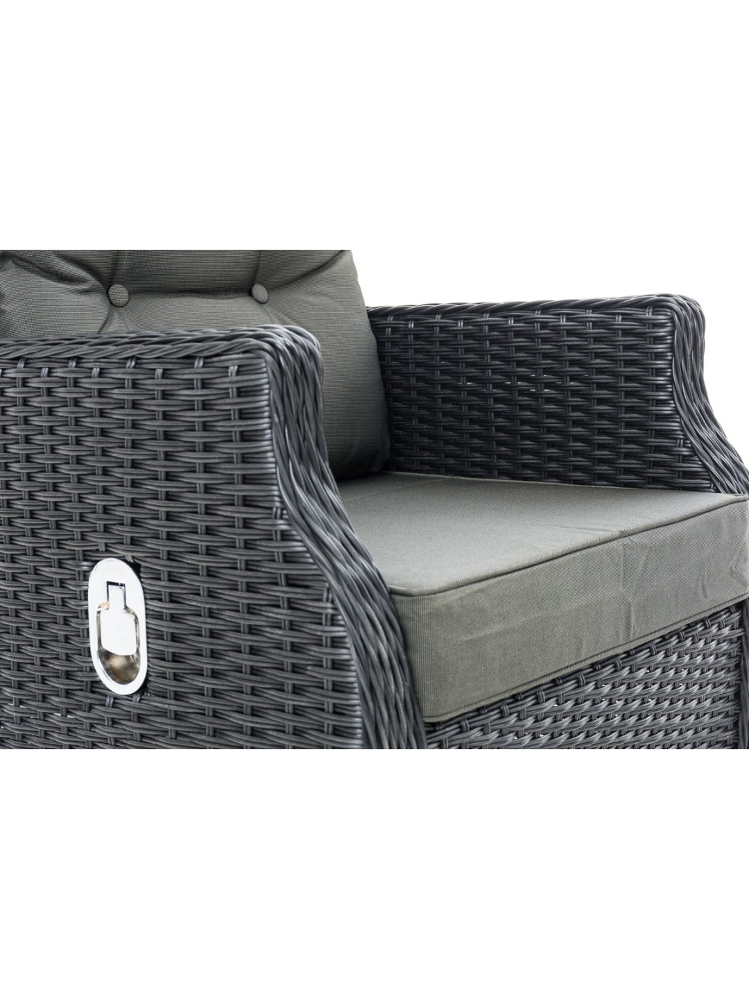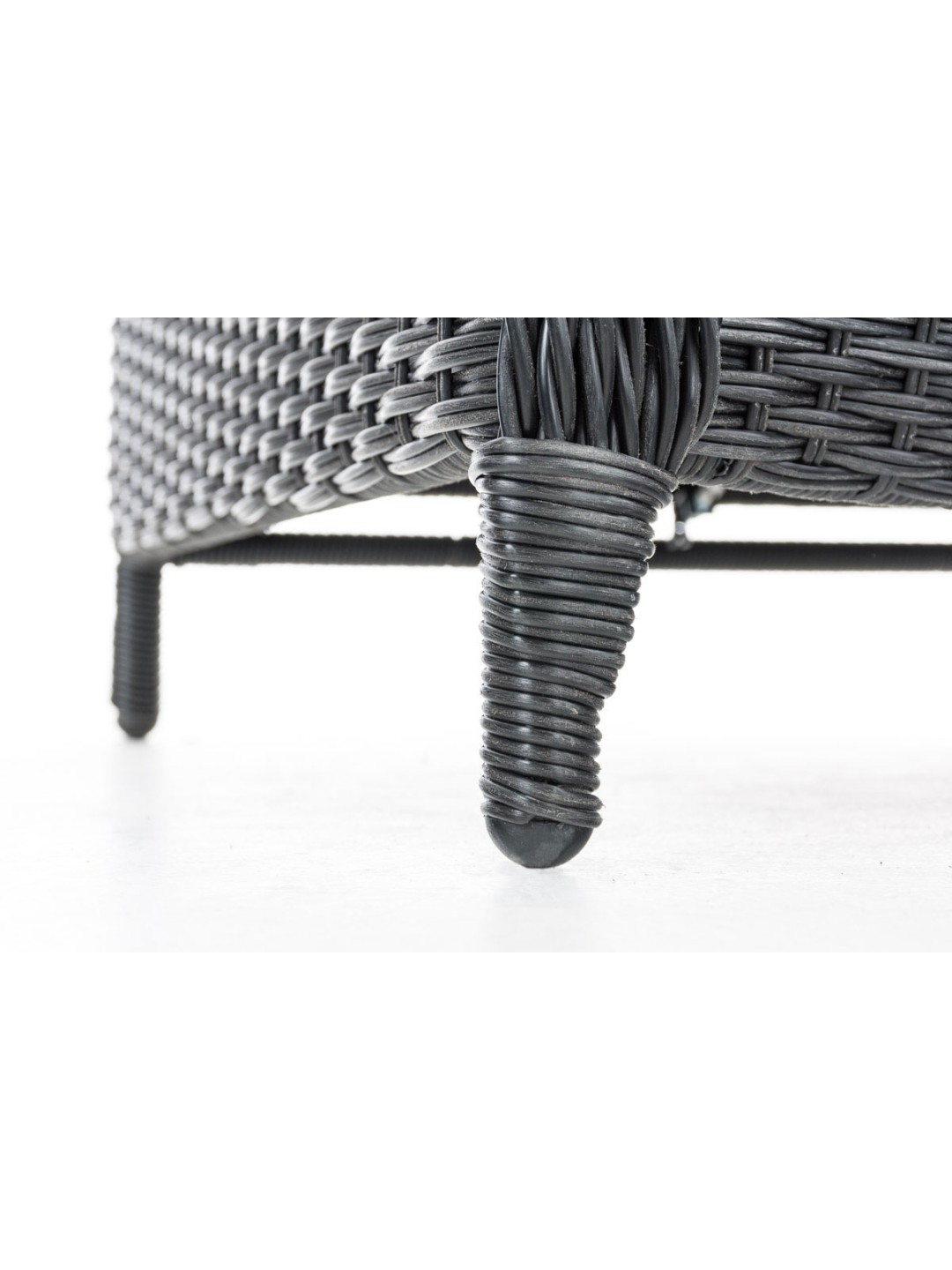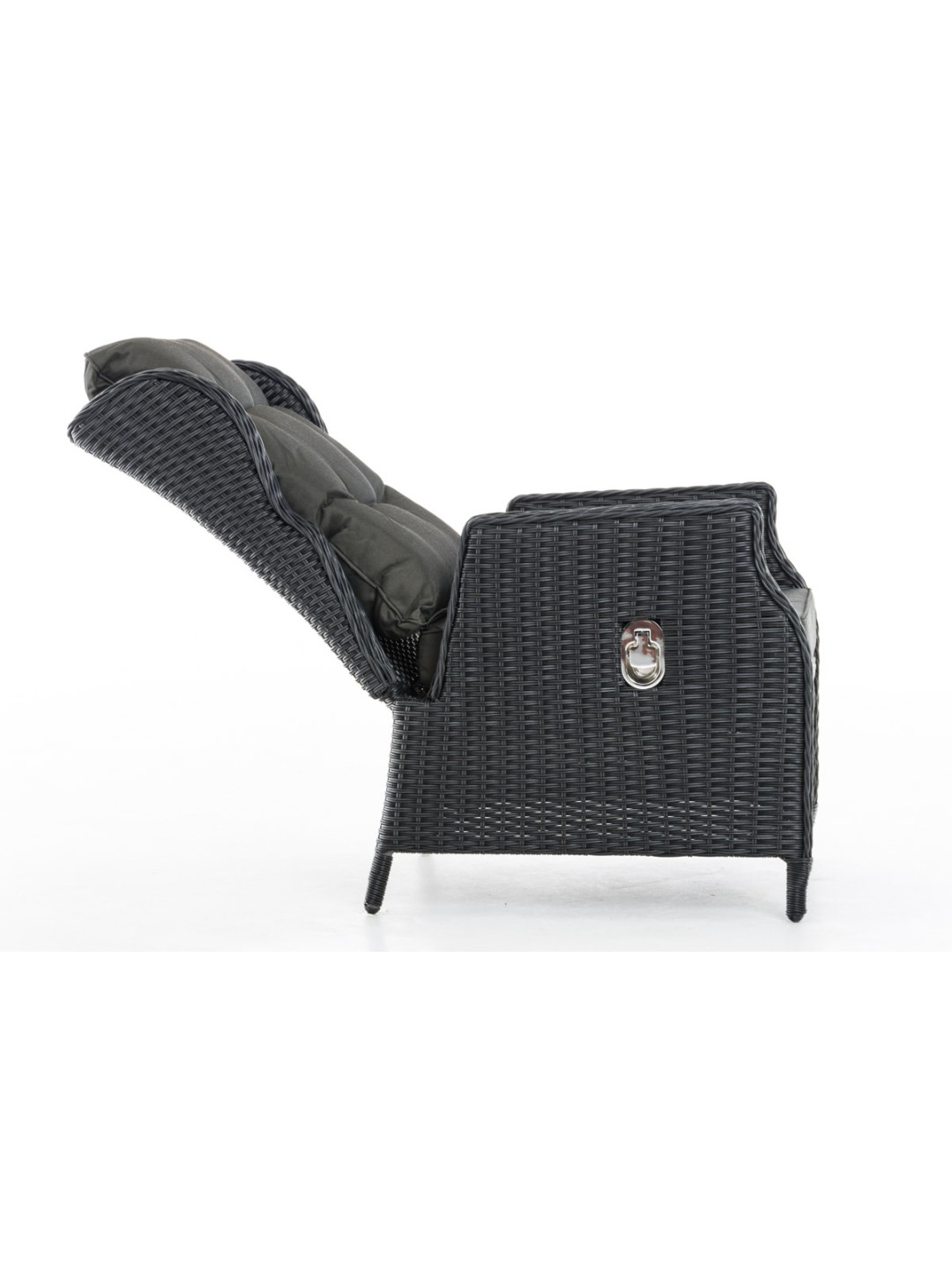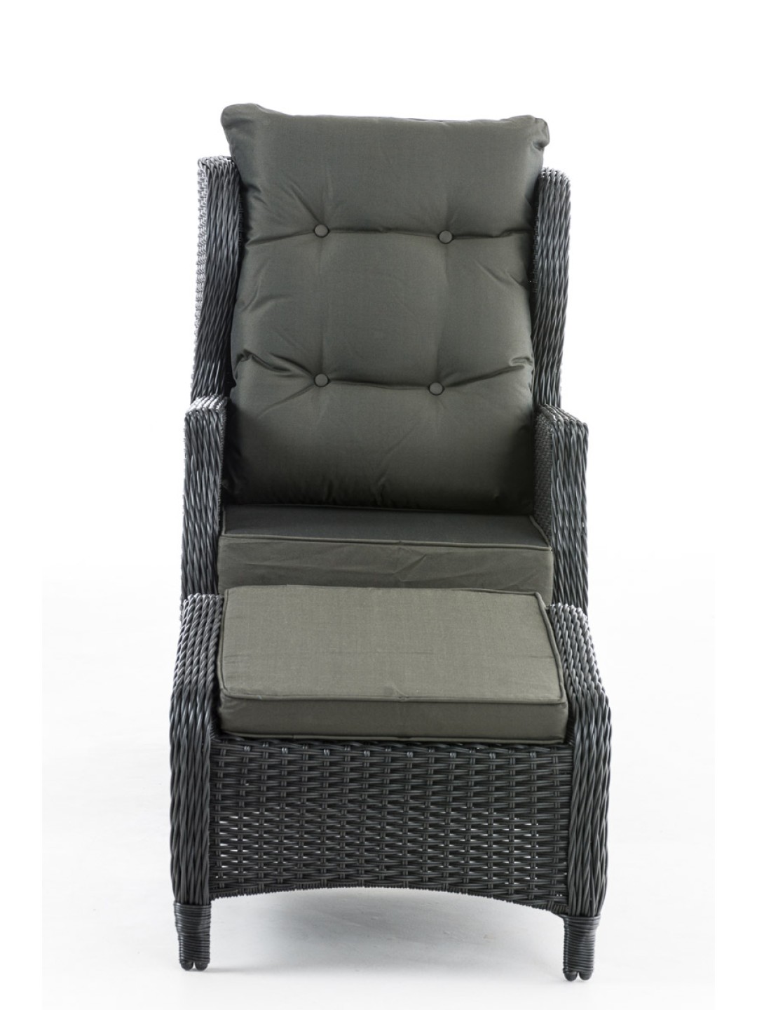 Lænestolen og fodskamlen er lavet af halvcirkelformet rattan, kroppen er lavet af 2 mm tyk flad rattan, kanterne er lavet af 5 mm tyk rund rattan. Lænestolen tilbyder fremragende komfort takket være de generøst polstrede sæde- og rygpuder og de store armlæn. Uanset om du læser, underholder eller bare slapper af, med denne lænestol har du alle muligheder. Stolens ryglæn kan justeres trinløst. I kombination med fodskamlen kan du sidde i denne lænestol, svarende til en indendørs hvilestol.
