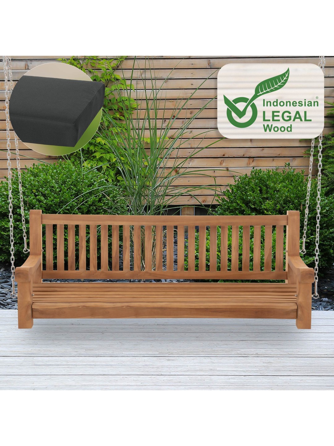 Joyce gyngebænk med sædehynde 180 cm + teak, mørkegrå
