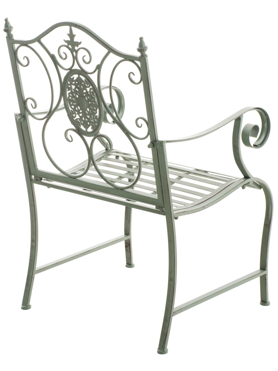Stolene er lavet af malet jern. Jernstolene er nemme at passe og kan rengøres med en fugtig klud og mildt rengøringsmiddel. Overfladerne på havestolene er afsluttet med en smuk patina, der matcher de smukke dekorationer. Havestolene bør beskyttes mod direkte vejrpåvirkninger.