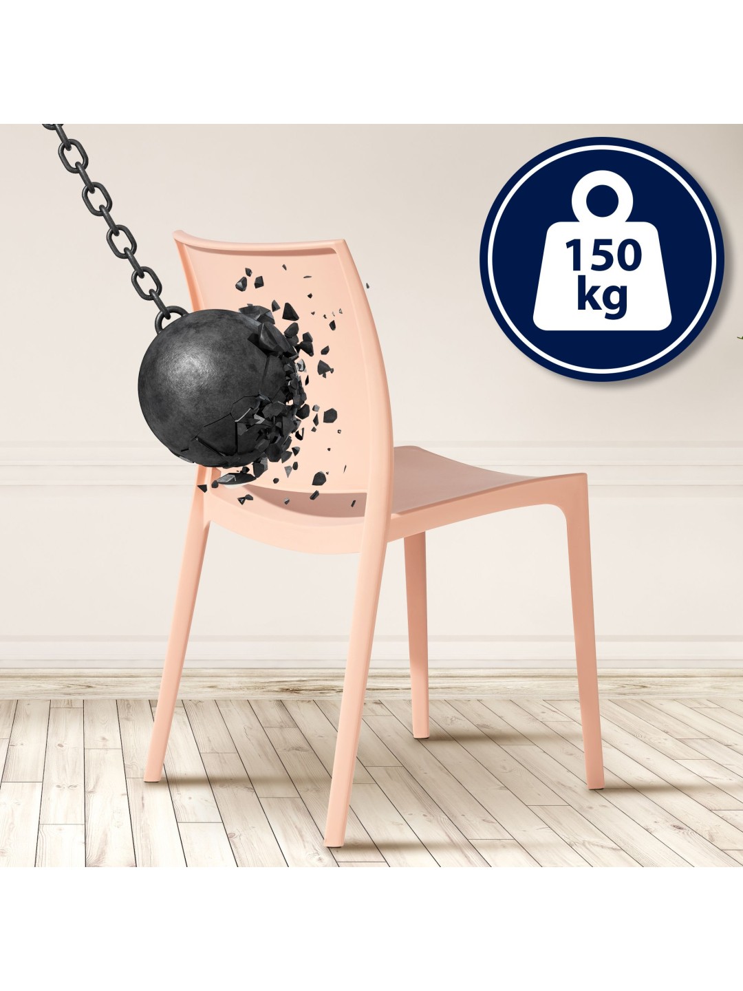 Stabelstolen har gulvbeskyttere under stolebenene, så følsomme overflader beskyttes. Den firbenede ramme er stabil og stabil. Der er ikke behov for irriterende montagearbejde med stolen.