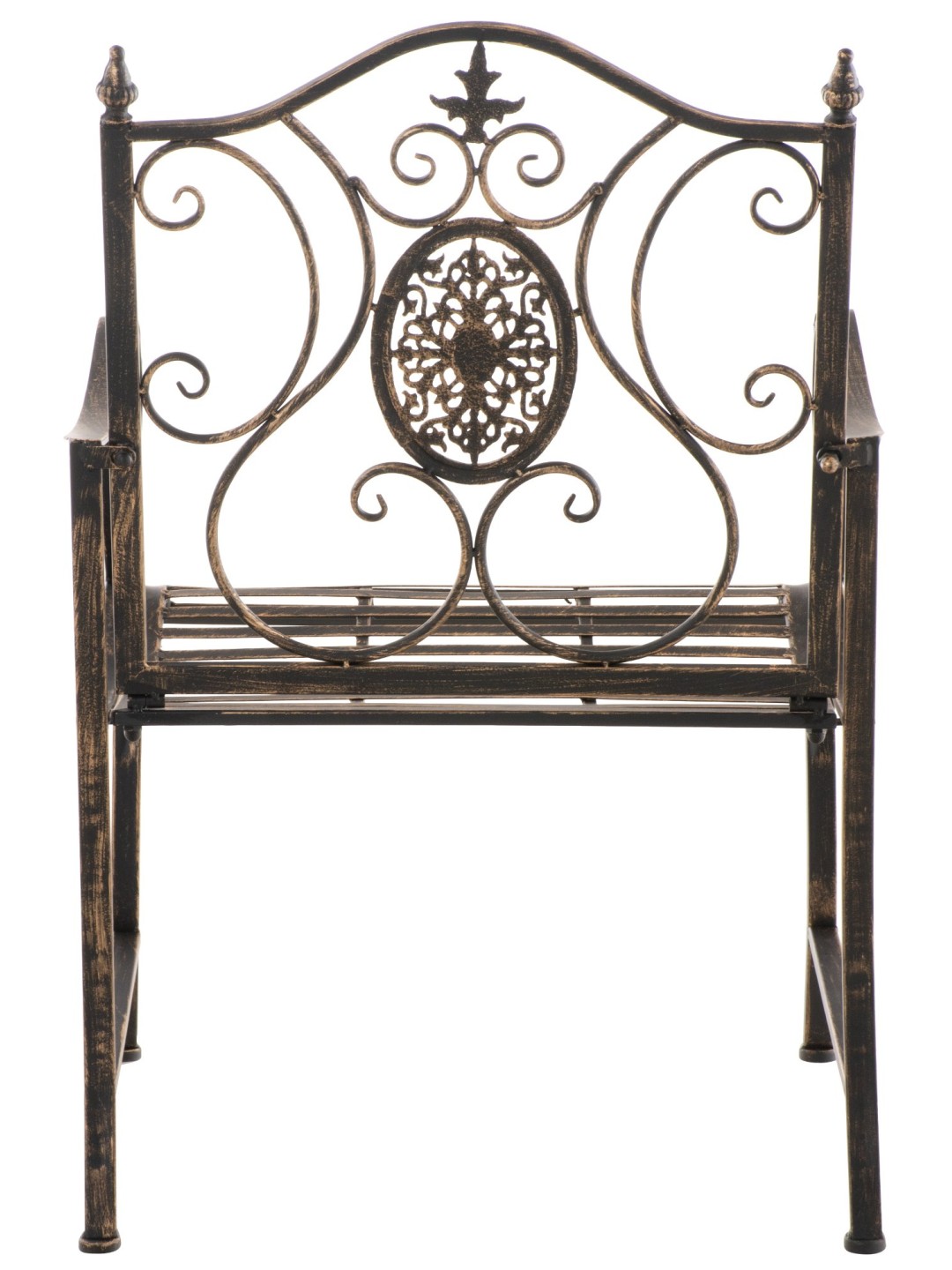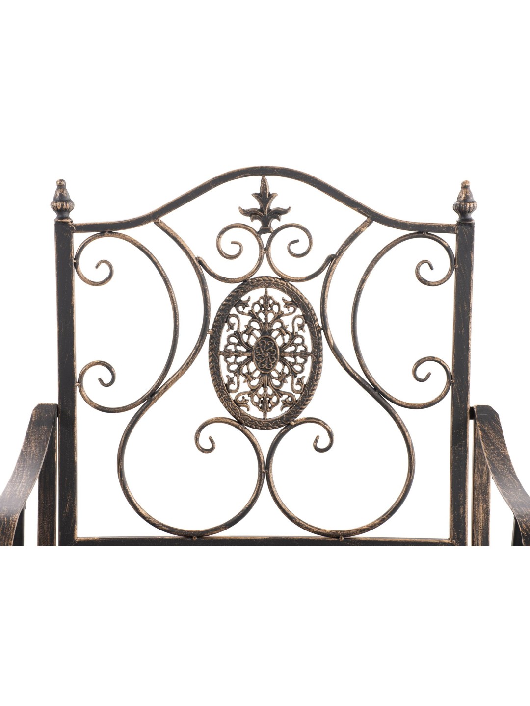 Stolen er lavet af malet jern. Jernstolen er nem at passe og kan rengøres med en fugtig klud og mildt rengøringsmiddel. Overfladen på havestolen er afsluttet med en smuk patina, der matcher de smukke dekorationer. Havestolen bør beskyttes mod direkte vejrpåvirkninger.