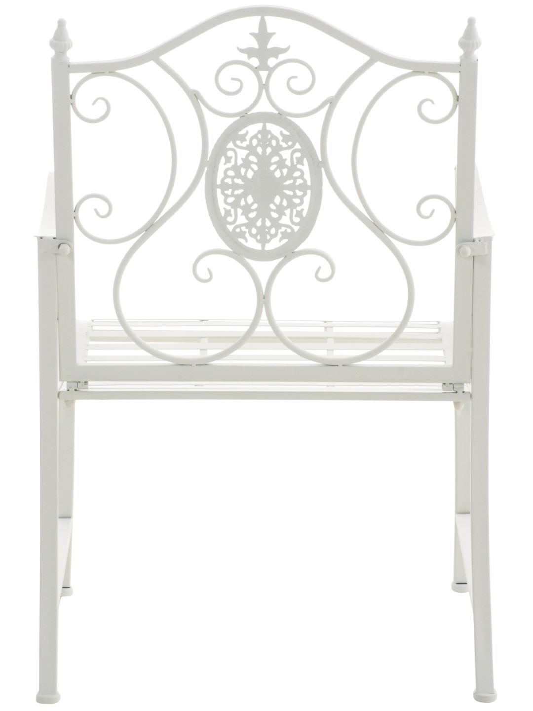 Stolen er lavet af malet jern. Jernstolen er nem at passe og kan rengøres med en fugtig klud og mildt rengøringsmiddel. Overfladen på havestolen er afsluttet med en smuk patina, der matcher de smukke dekorationer. Havestolen bør beskyttes mod direkte vejrpåvirkninger.