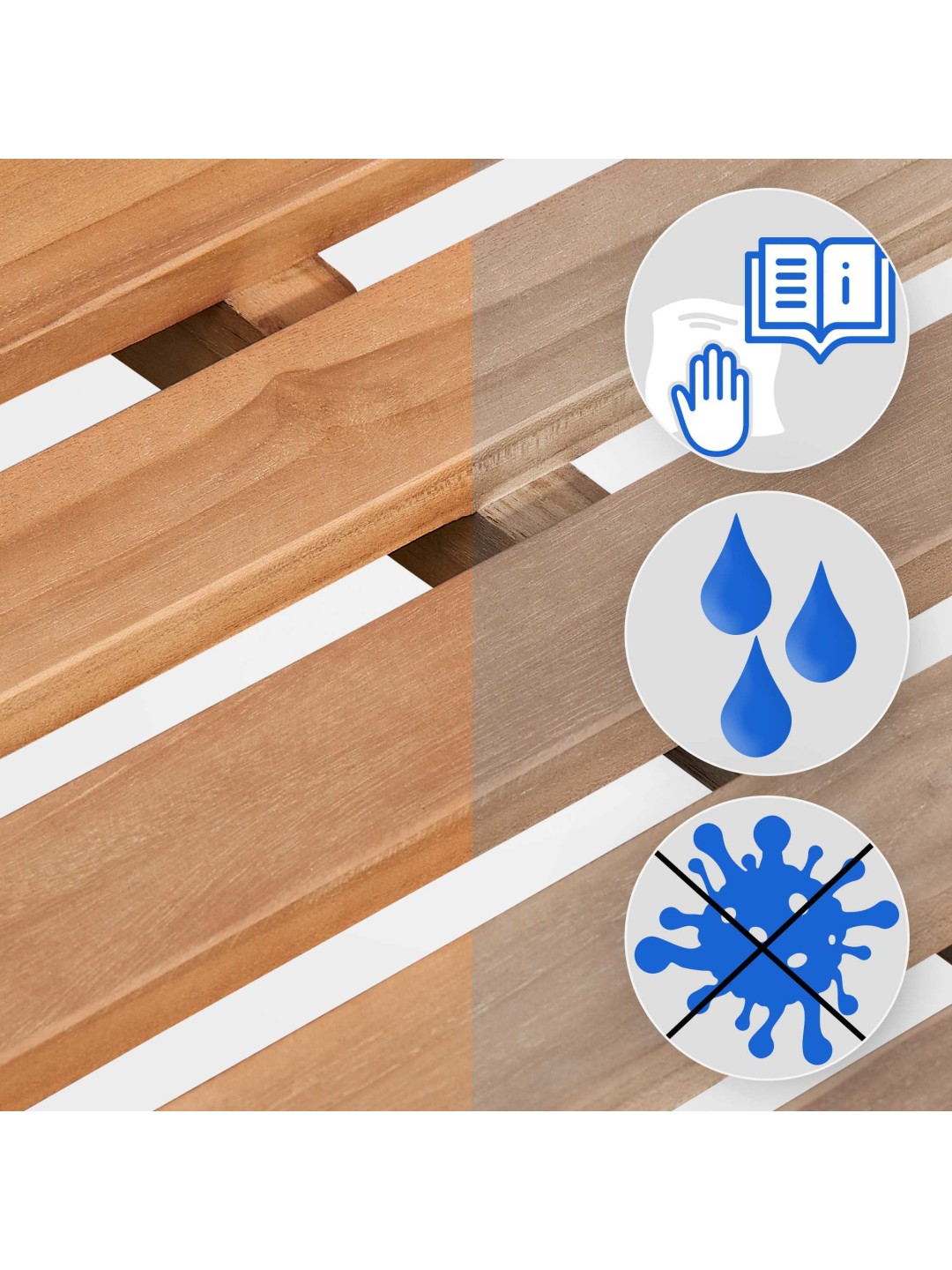 *For permanent at bevare farven anbefales passende plejeolier til teaktræ, som du kan få hos specialister, hvis det er nødvendigt.