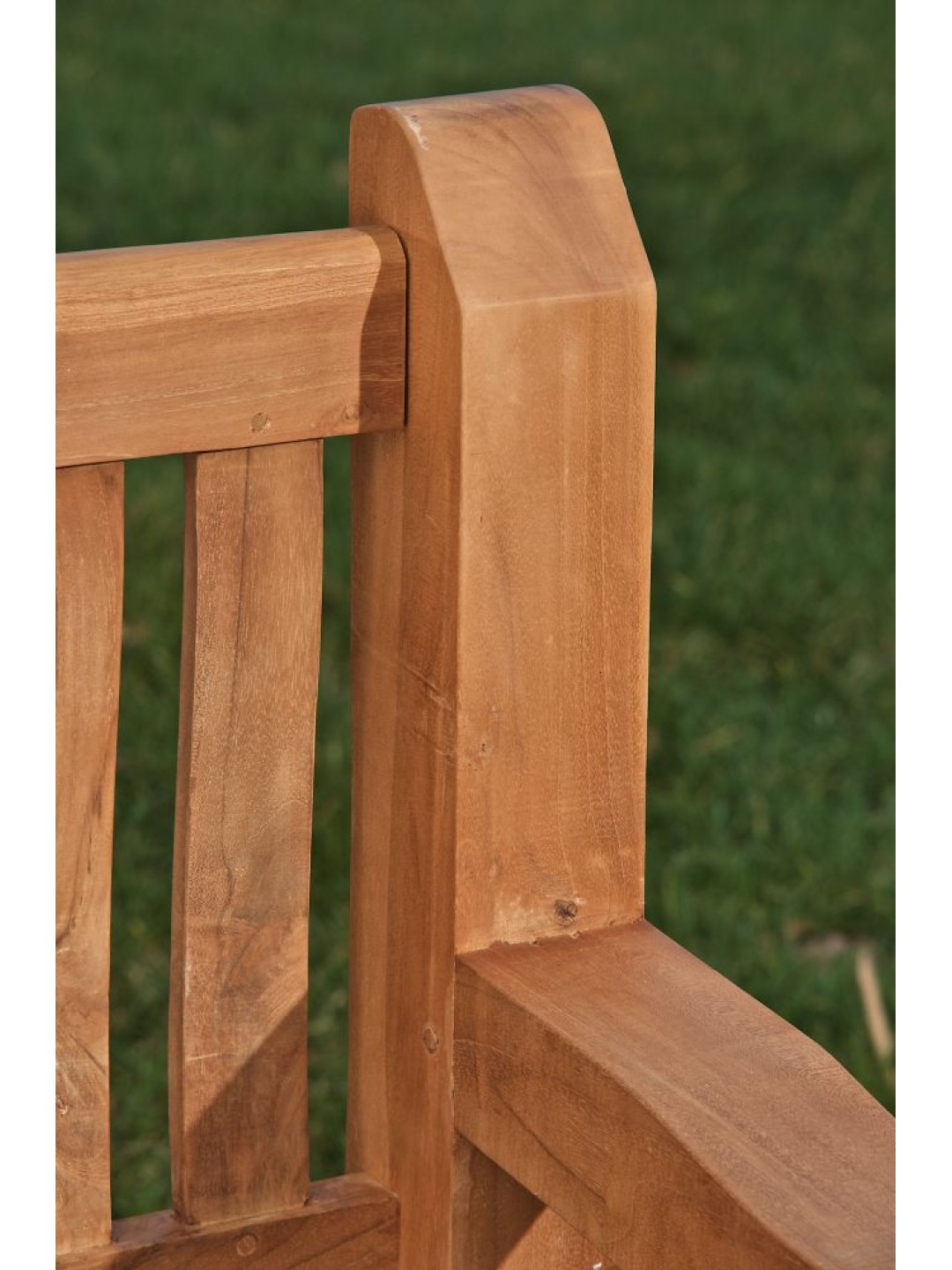 Det let buede sæde, det behageligt skrå ryglæn og de komfortable armlæn giver teakbænken ergonomisk siddekomfort. Staldbenene er lavet af 7 x 7 cm tykke massive træplanker.